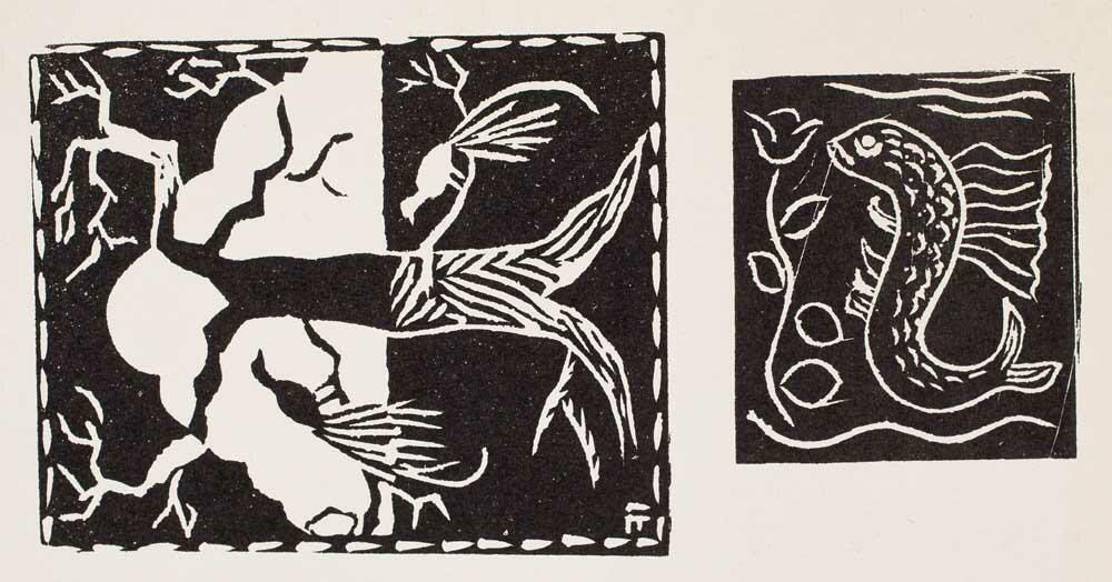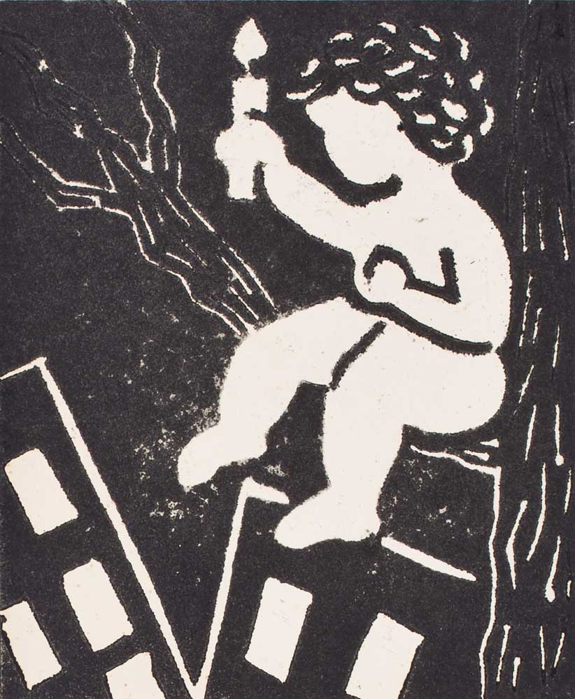 Binnenzijde omslag. De gekaderde tekening is een voorstudie voor een van Idonia's etsen.