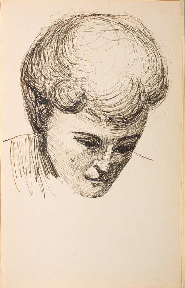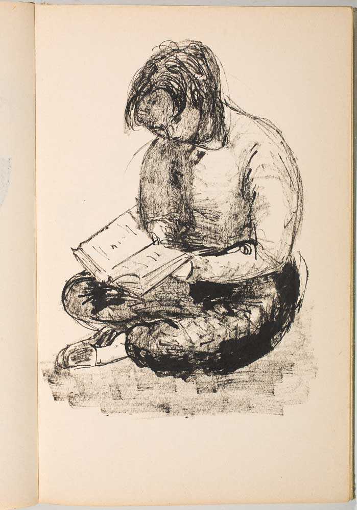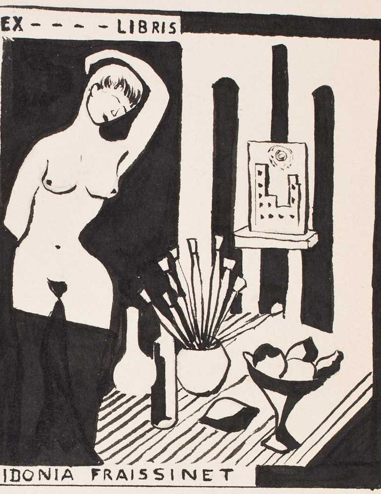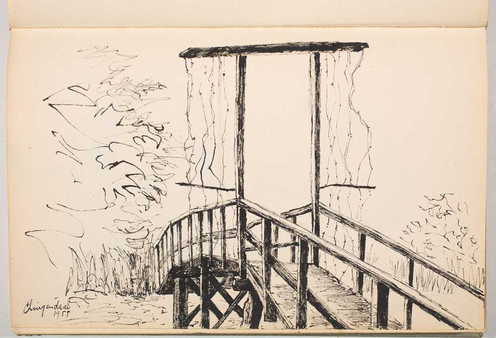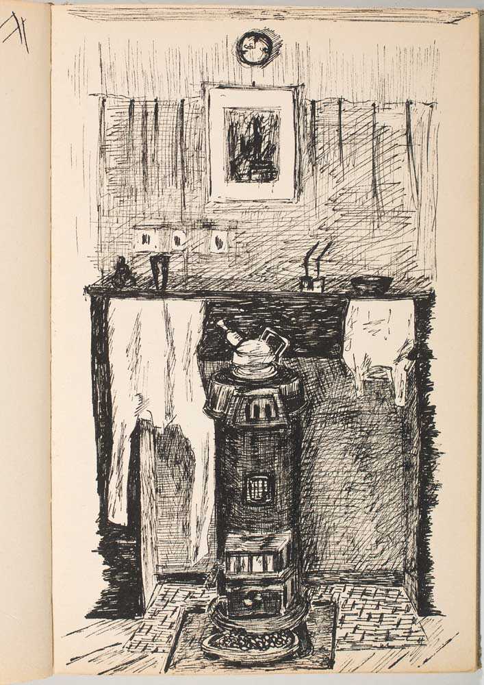 Inside cover. The framed drawing is a preliminary study for one of Idonia's etchings.