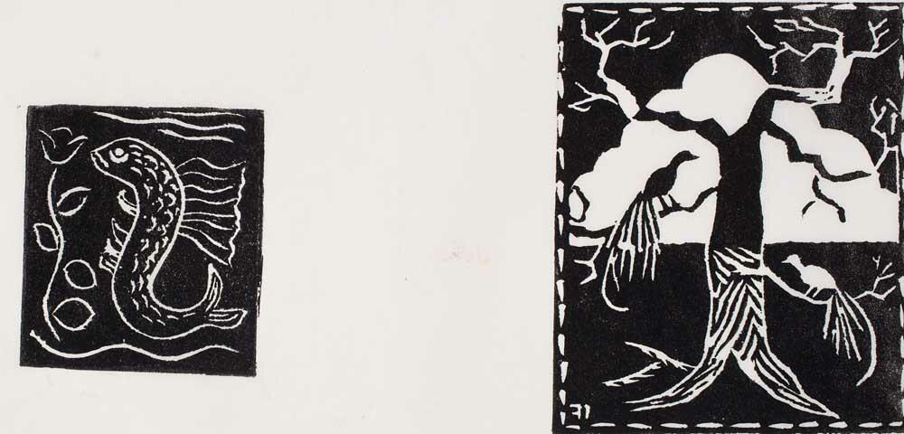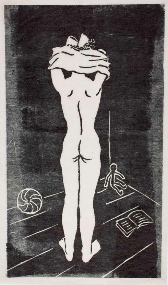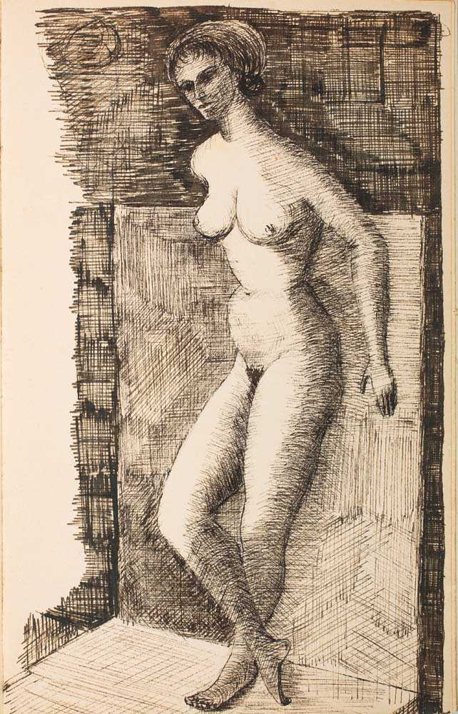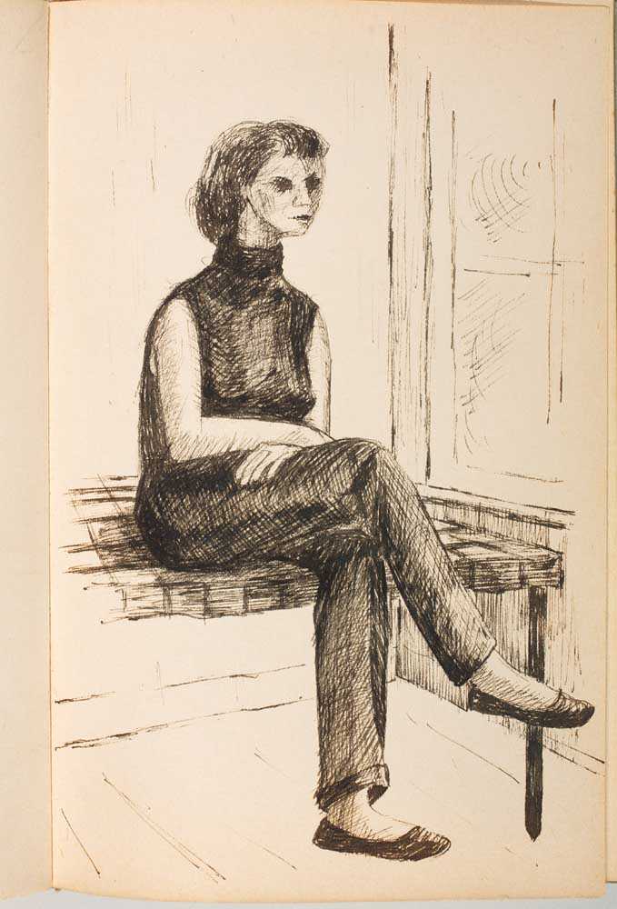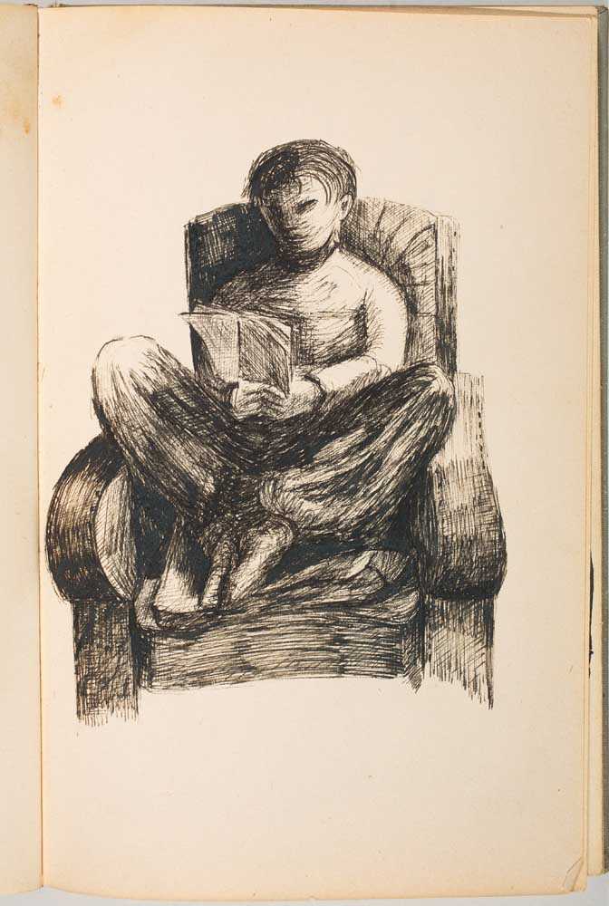 Inside cover. The framed drawing is a preliminary study for one of Idonia's etchings.