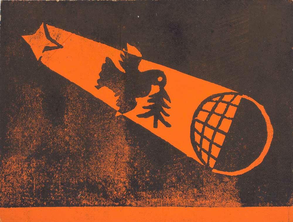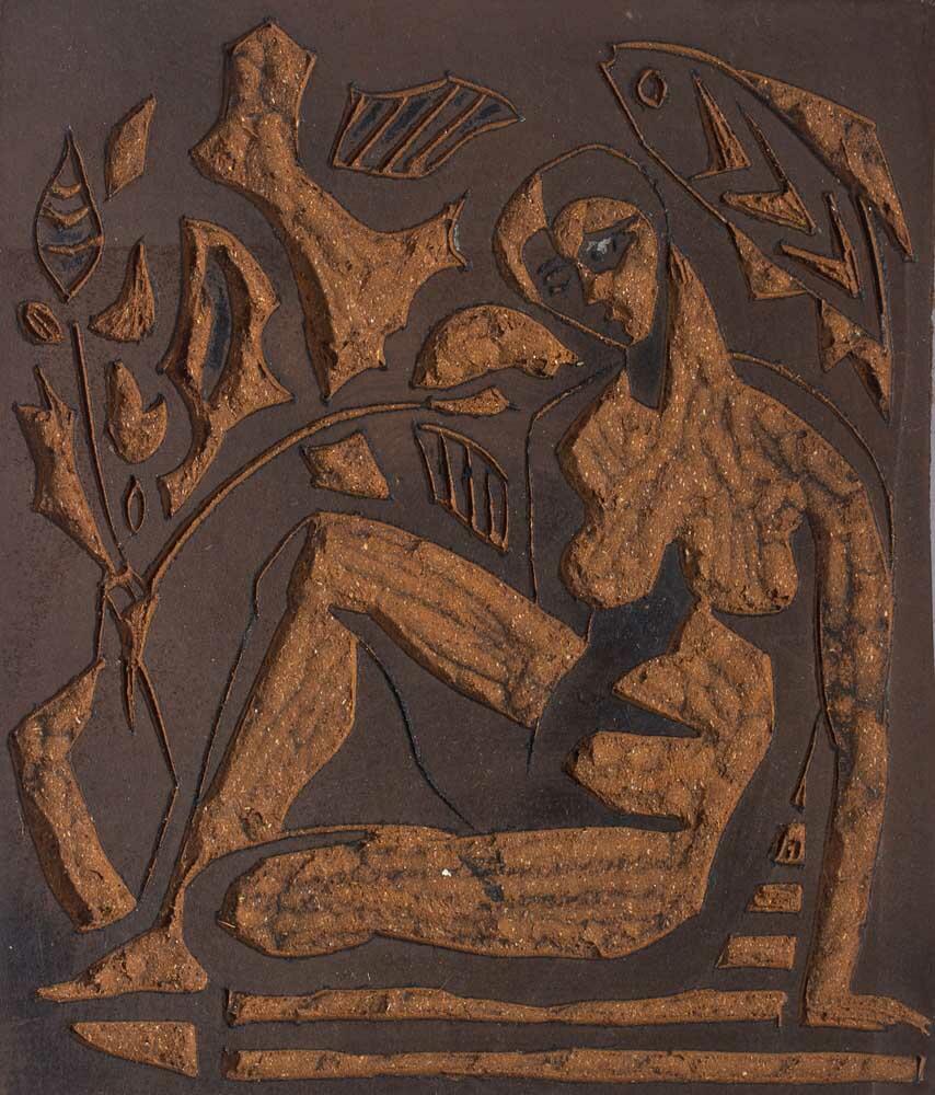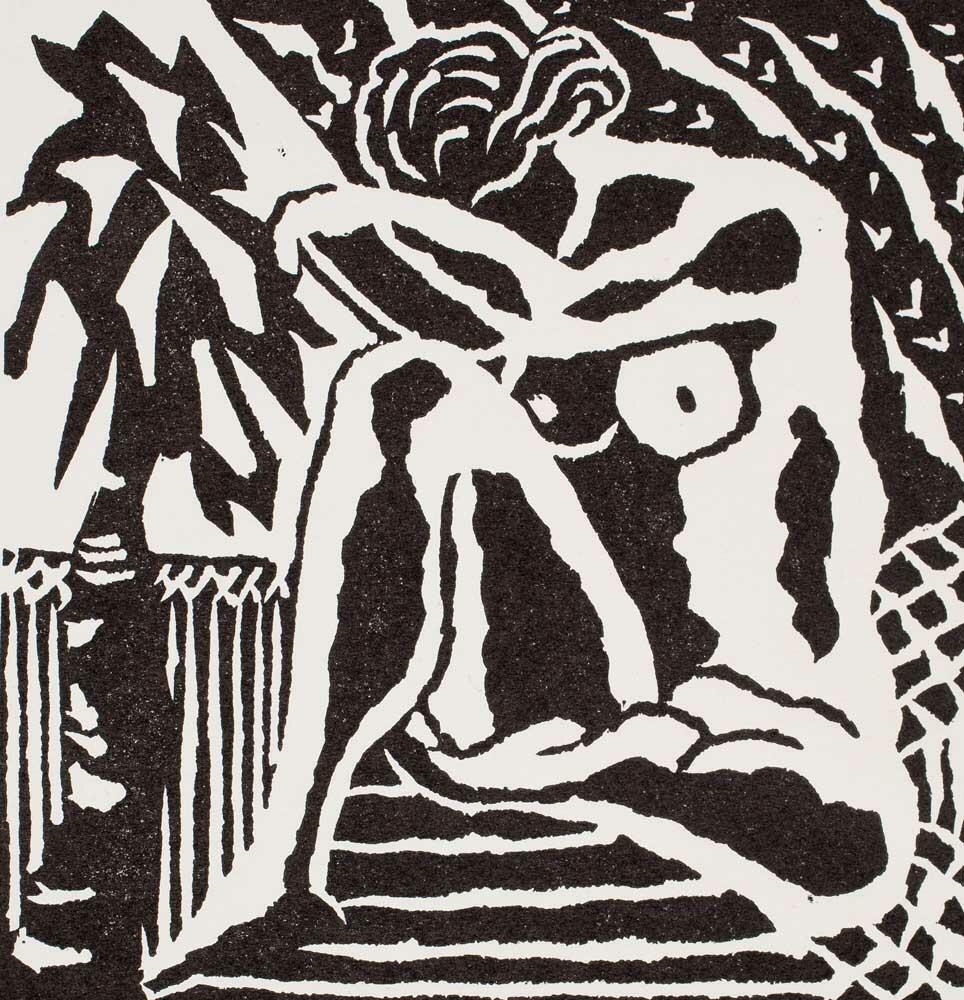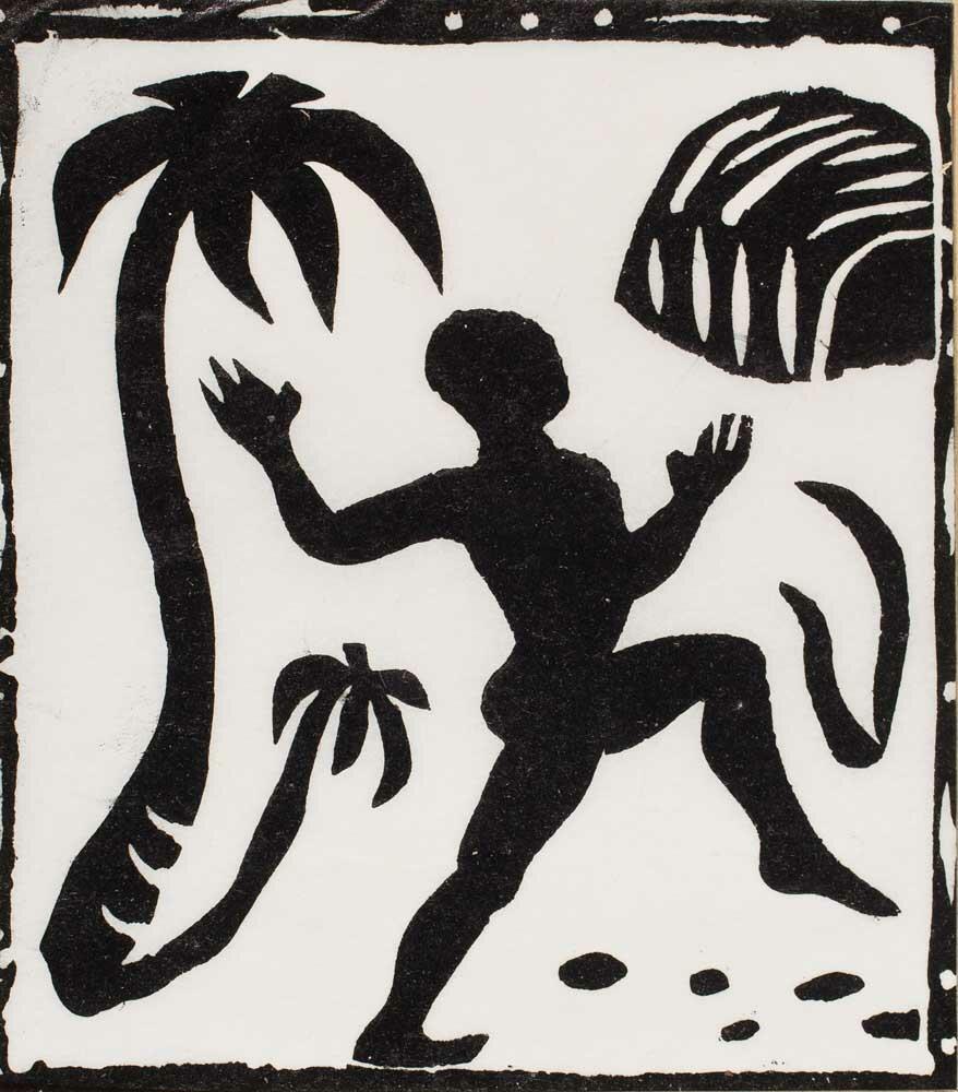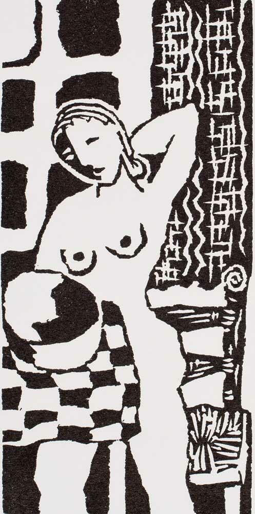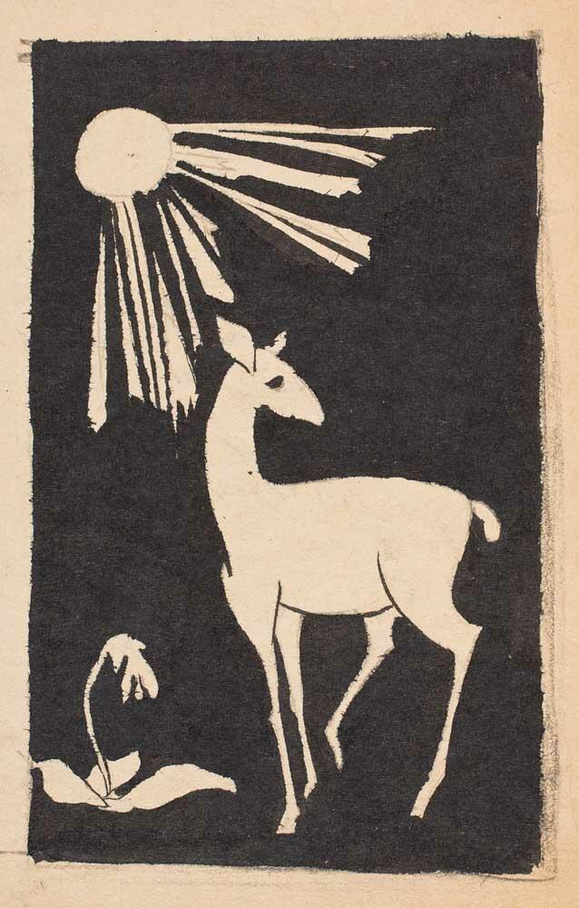 Blad 101. Tekening in zwarte inkt op ondergrond van plakkaatverf. Achterzijde leeg.
