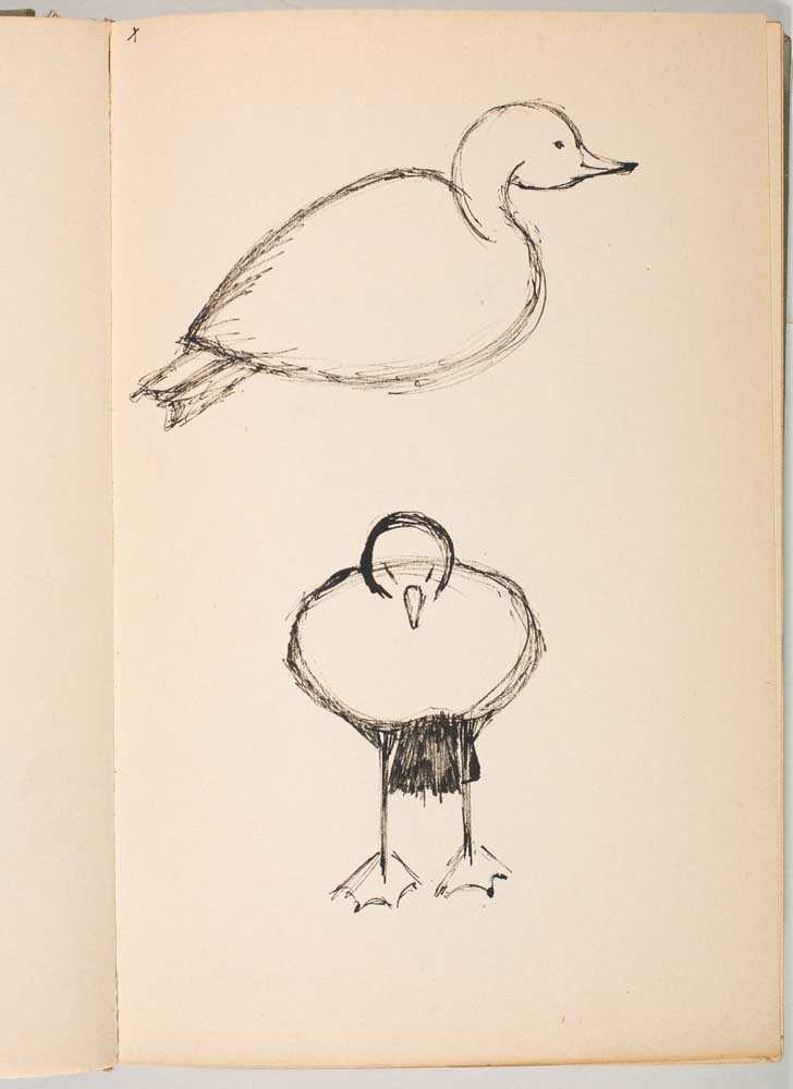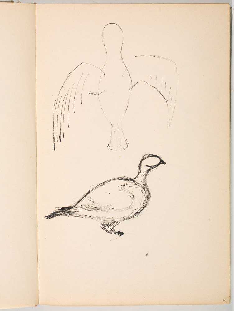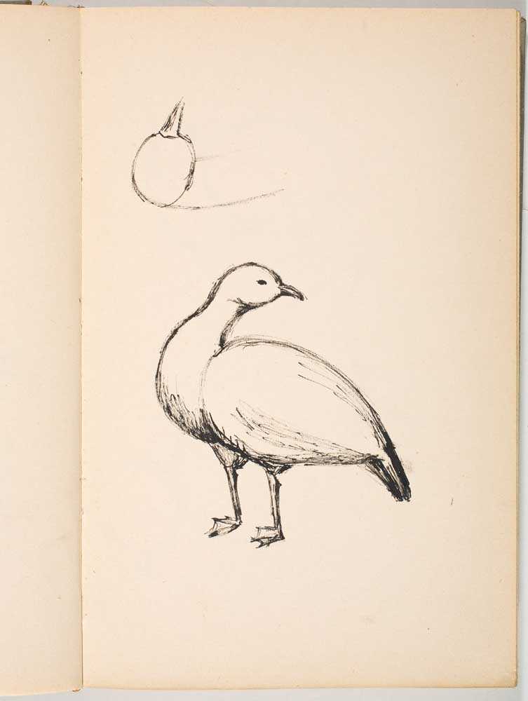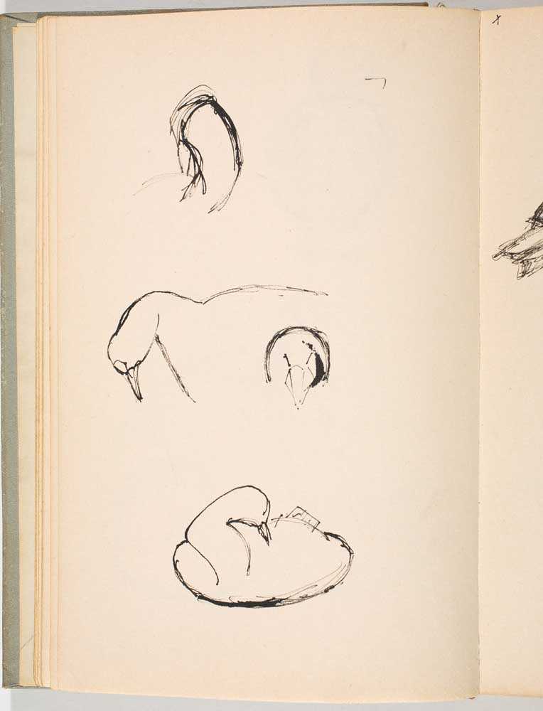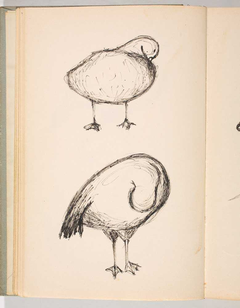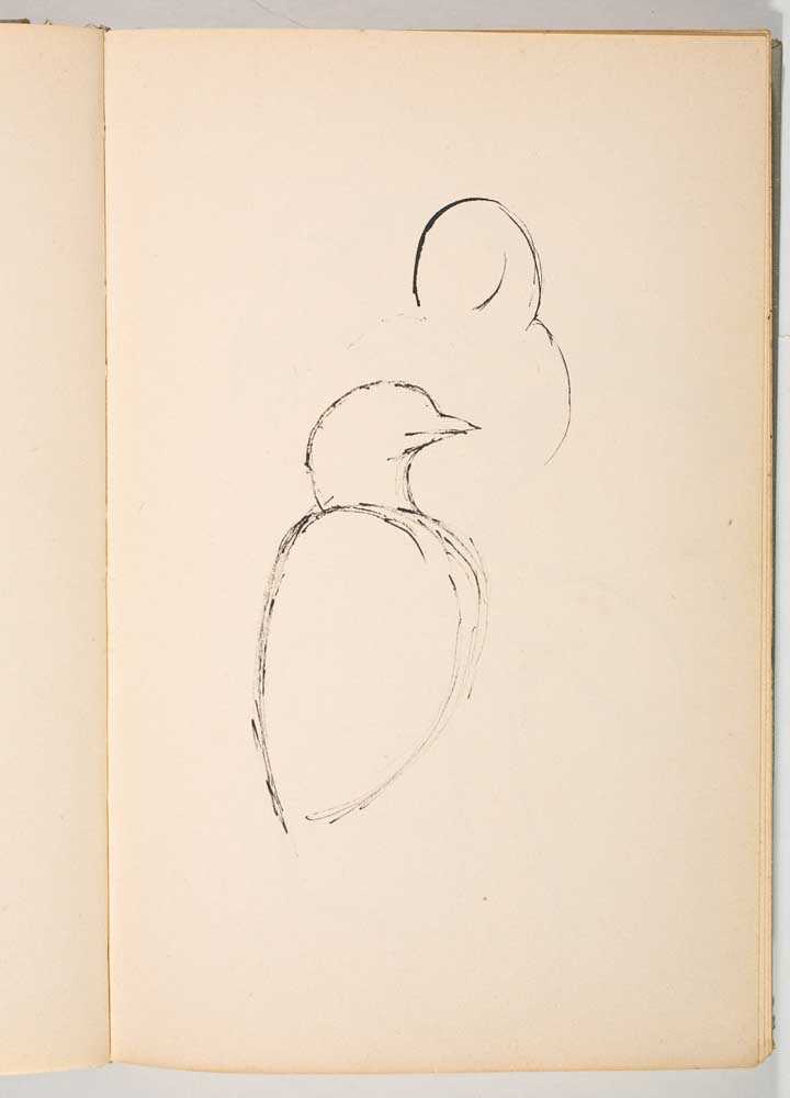 blad 16 achterzijde. 2 schetsjes van een vogelkop.