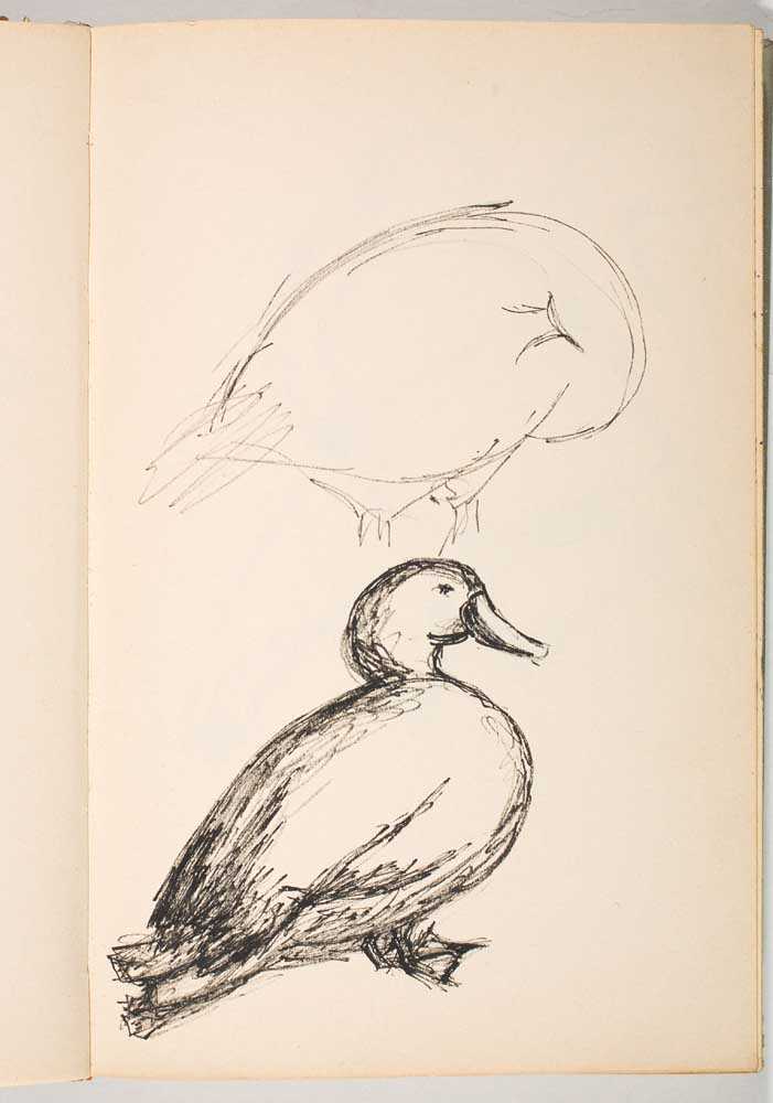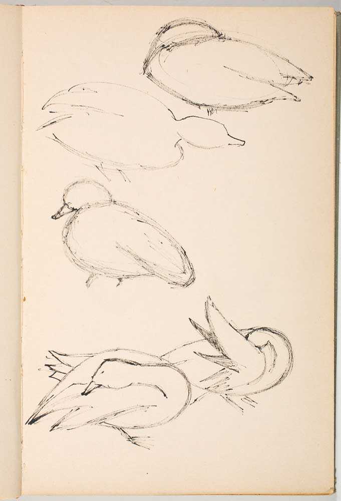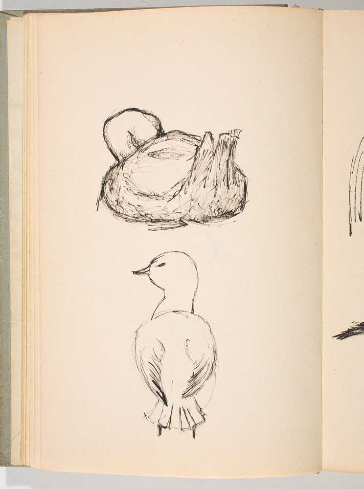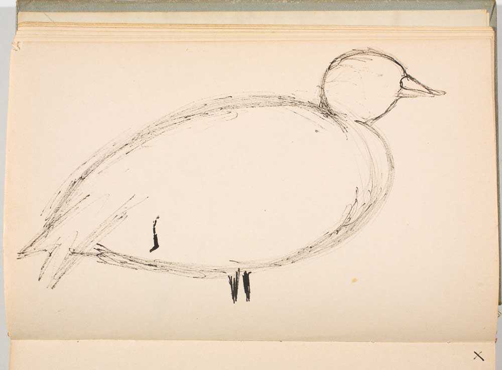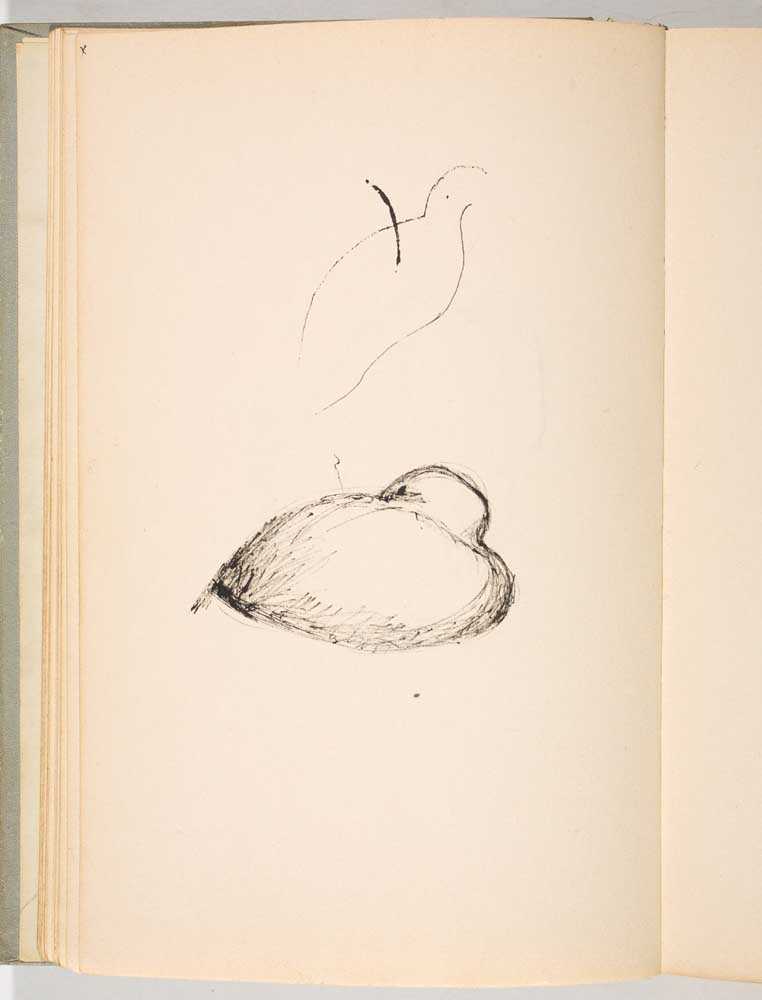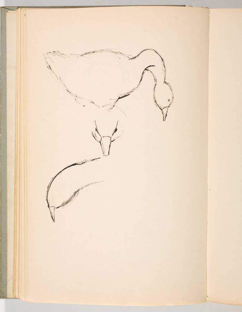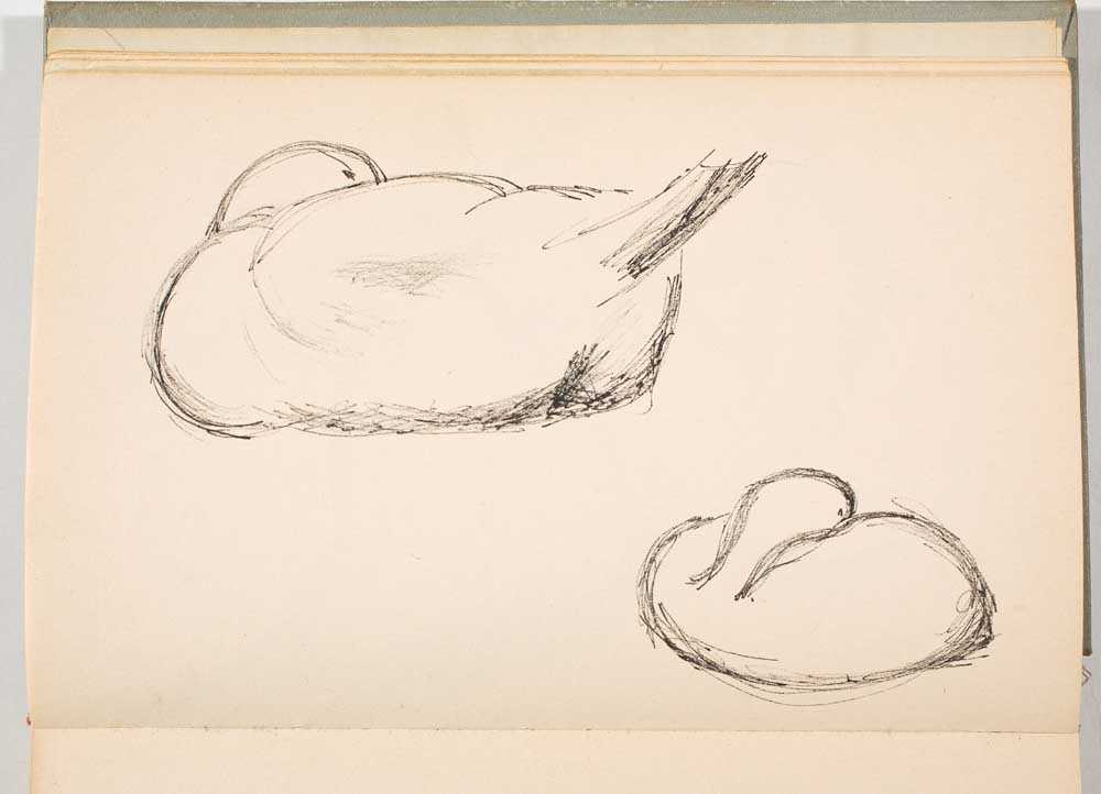 blad 16 achterzijde. 2 schetsjes van een vogelkop.