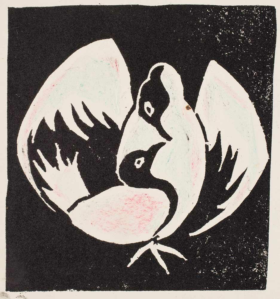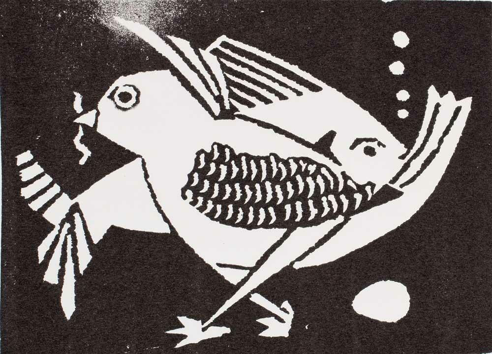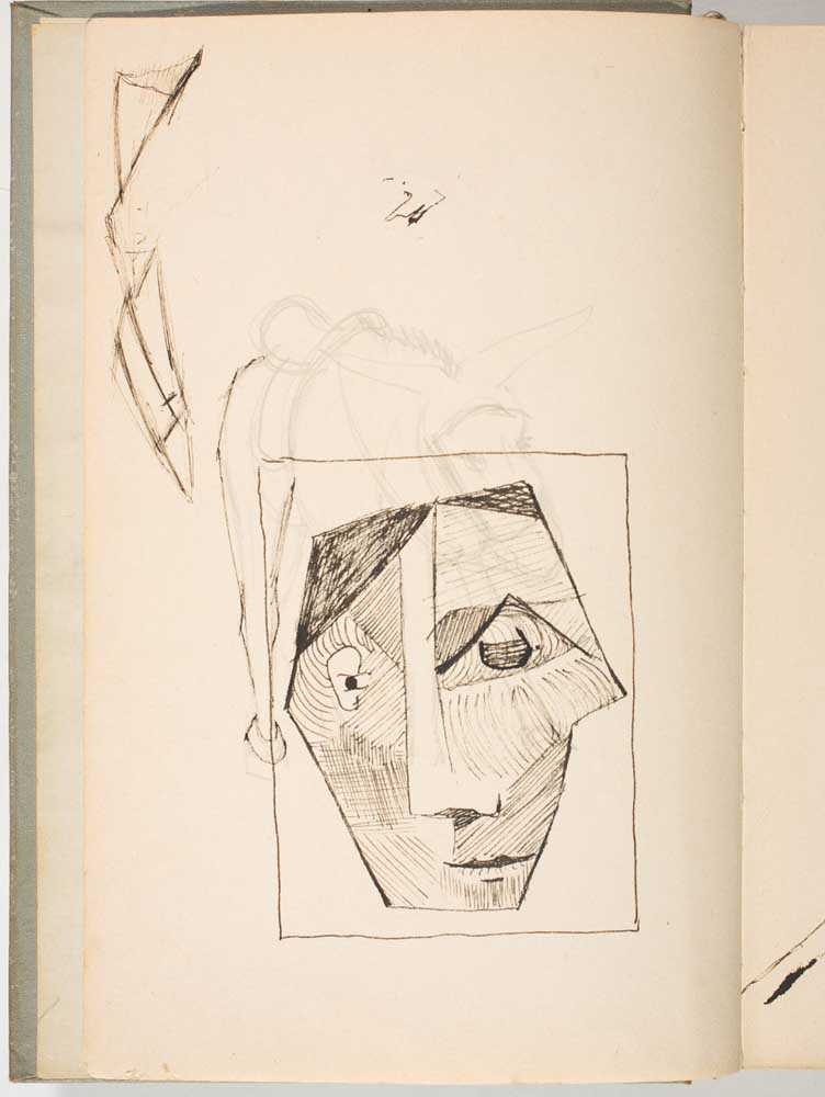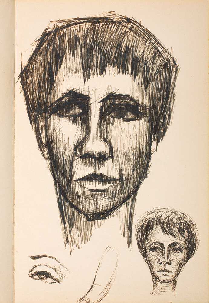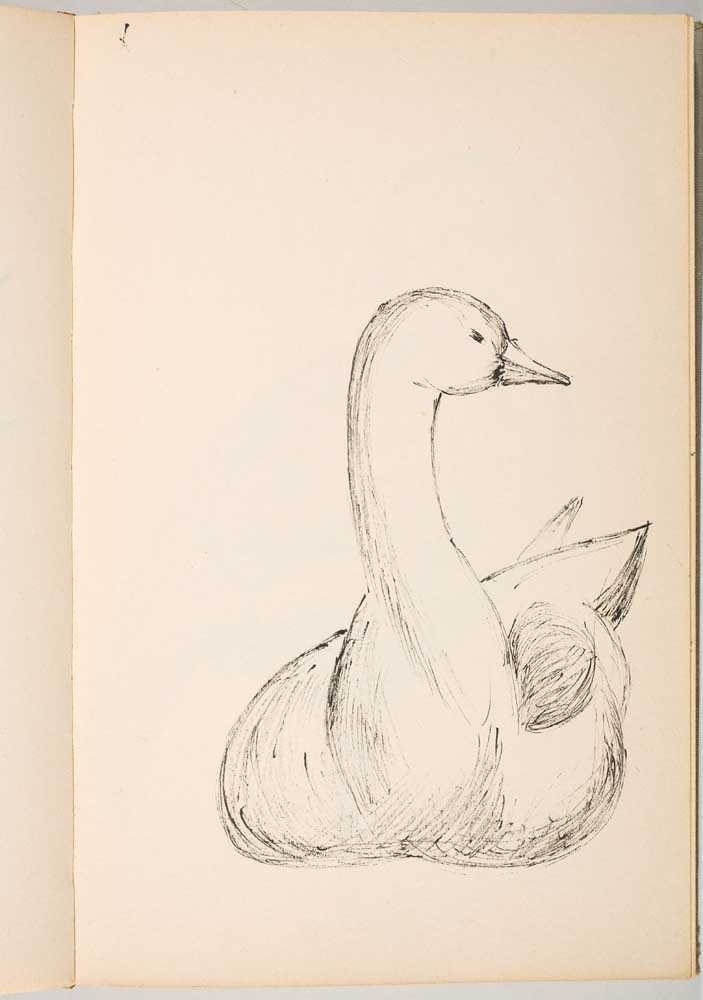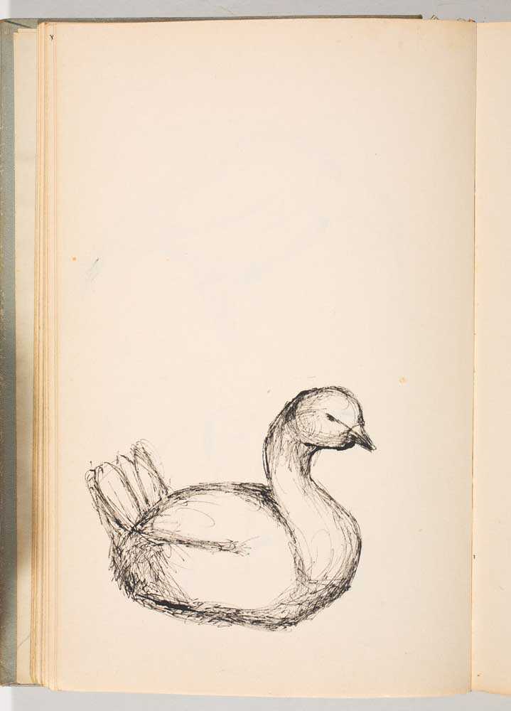 blad 16 achterzijde. 2 schetsjes van een vogelkop.