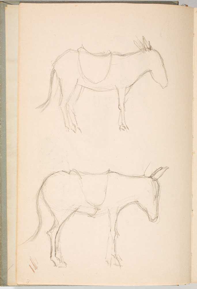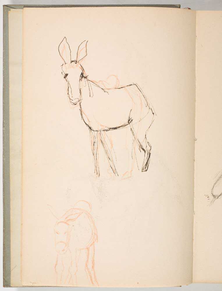 Sheet 005 A study of a donkey and one of a child playing, possibly Idonia's daughter. -