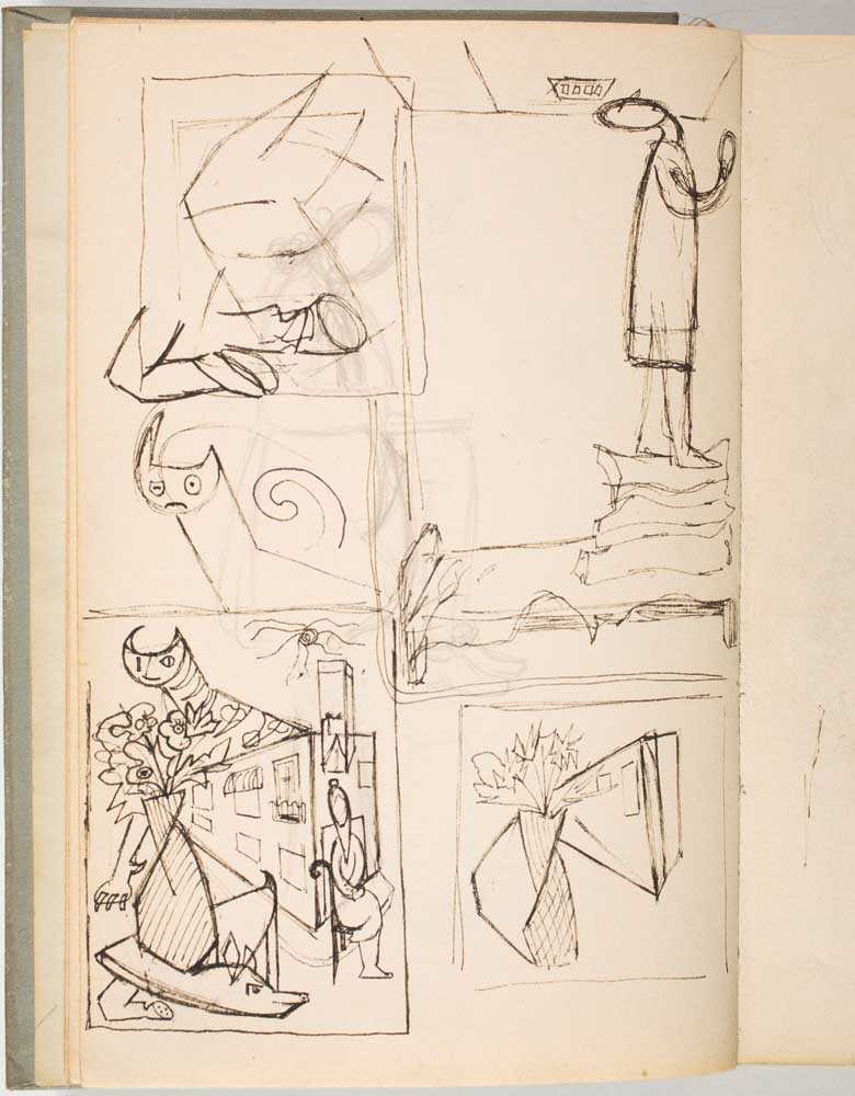 Blad 008 achterzijde. 2 snelle schetsjes.