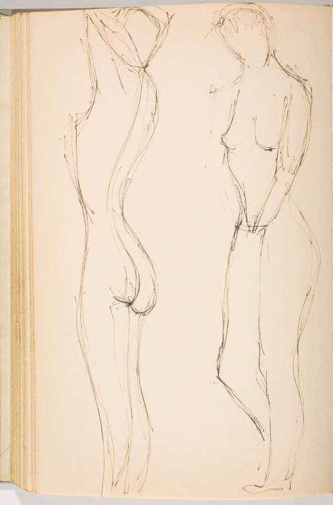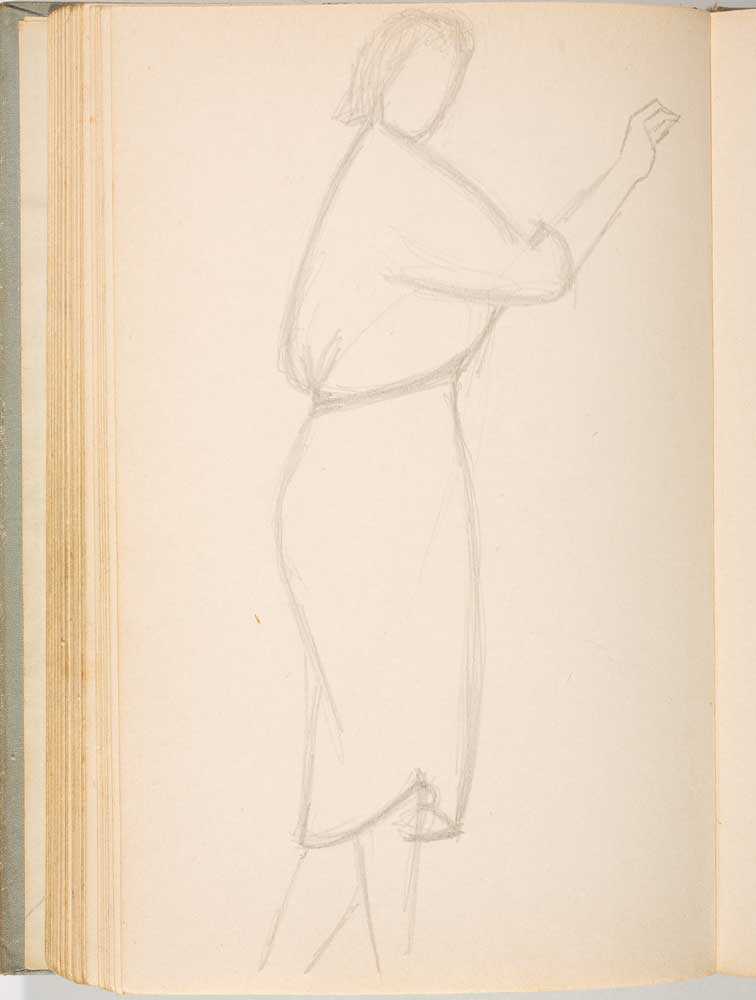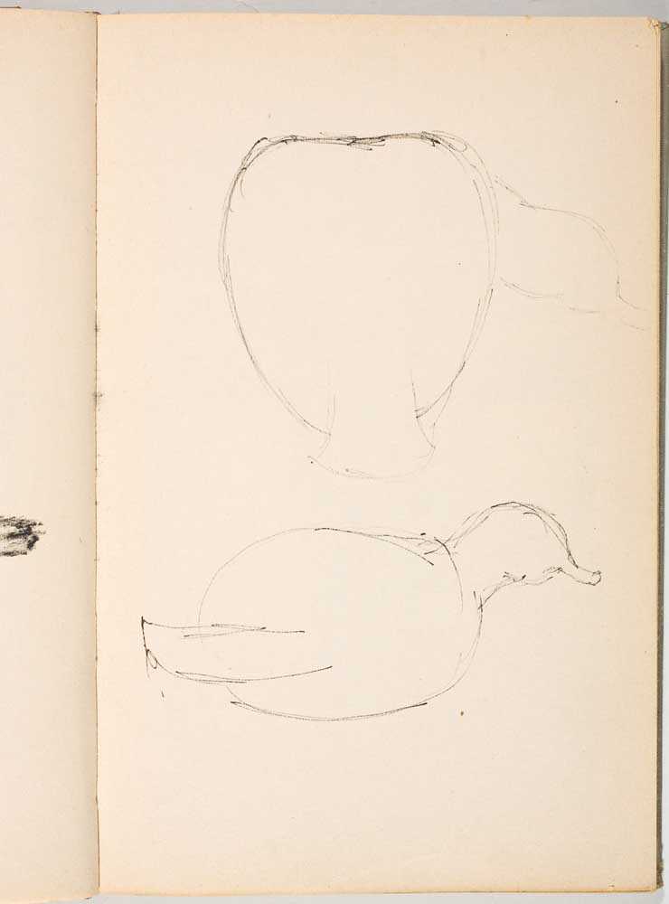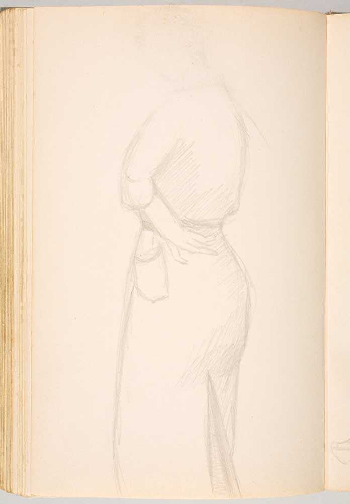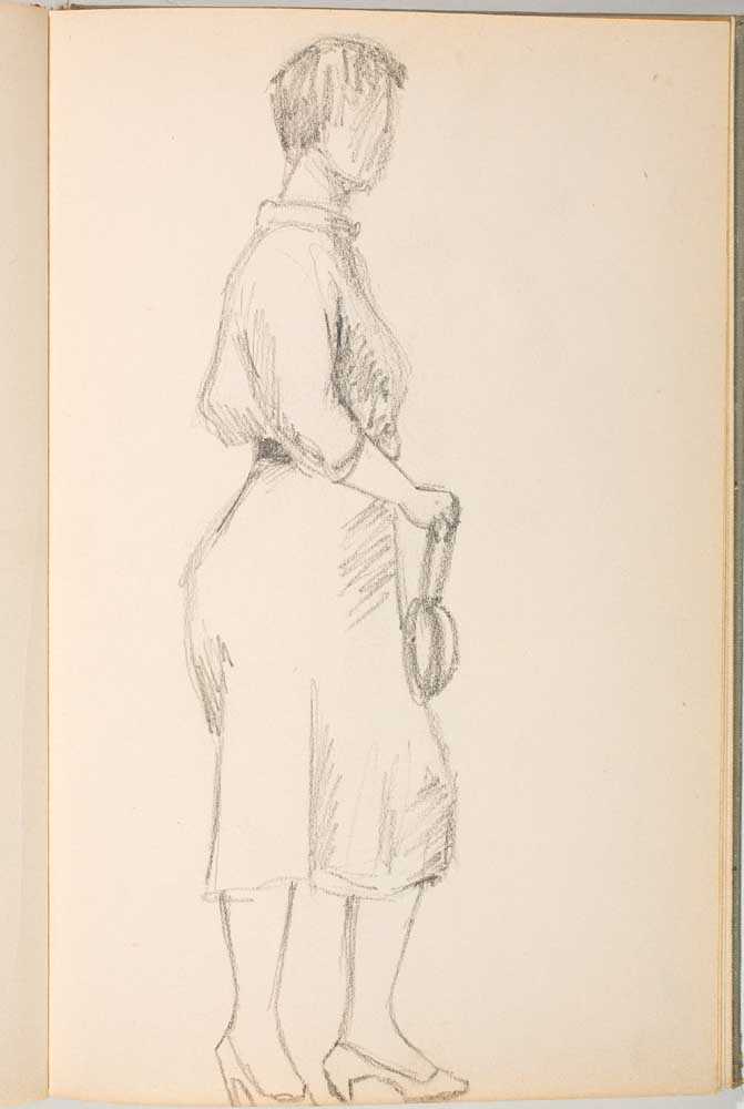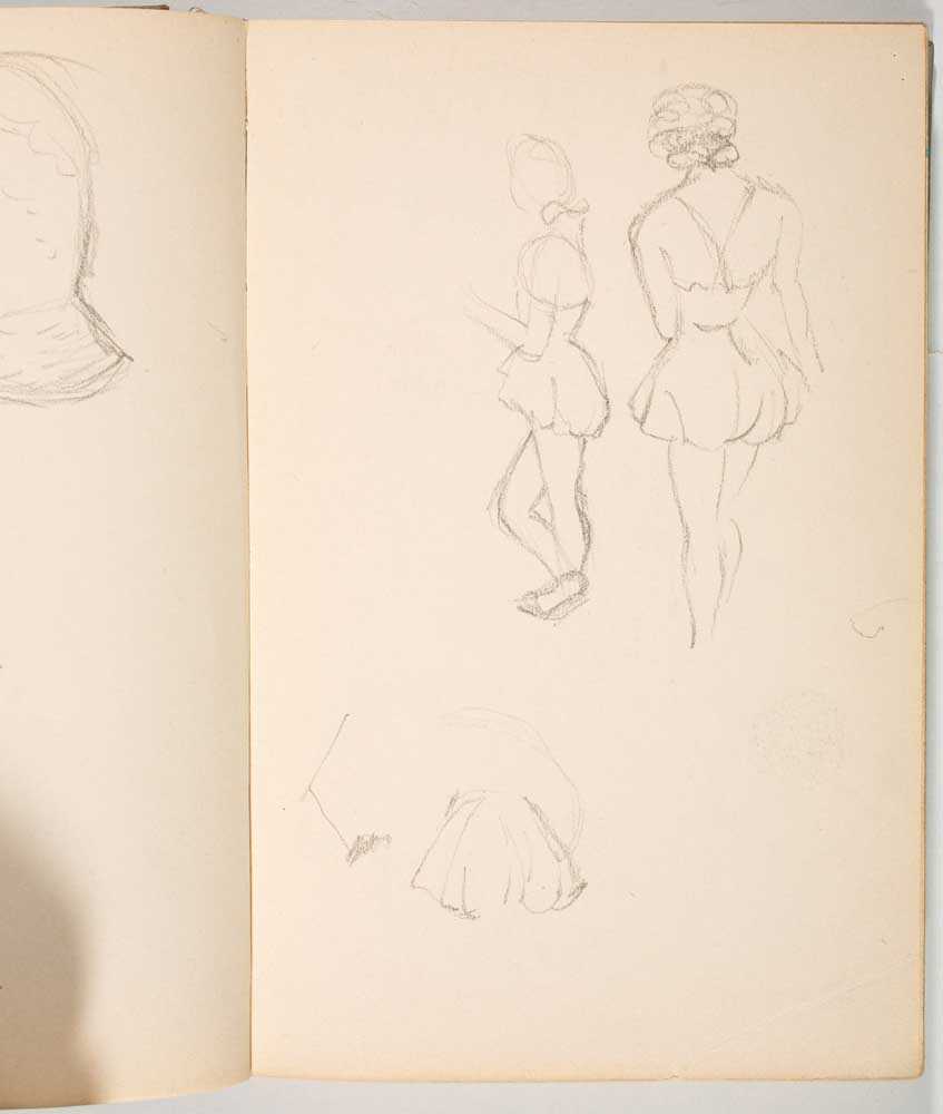 Sketchbook 9 was an improvement for Idonia. Dummies, books executed like a real bound book, but with blank covers and blank pages, appeared for the first time in sale bookstores. The paper quality was less than that of sketchbooks, but certainly good enough for study. The first three quires are missing, probably used loosely by Idonia.
