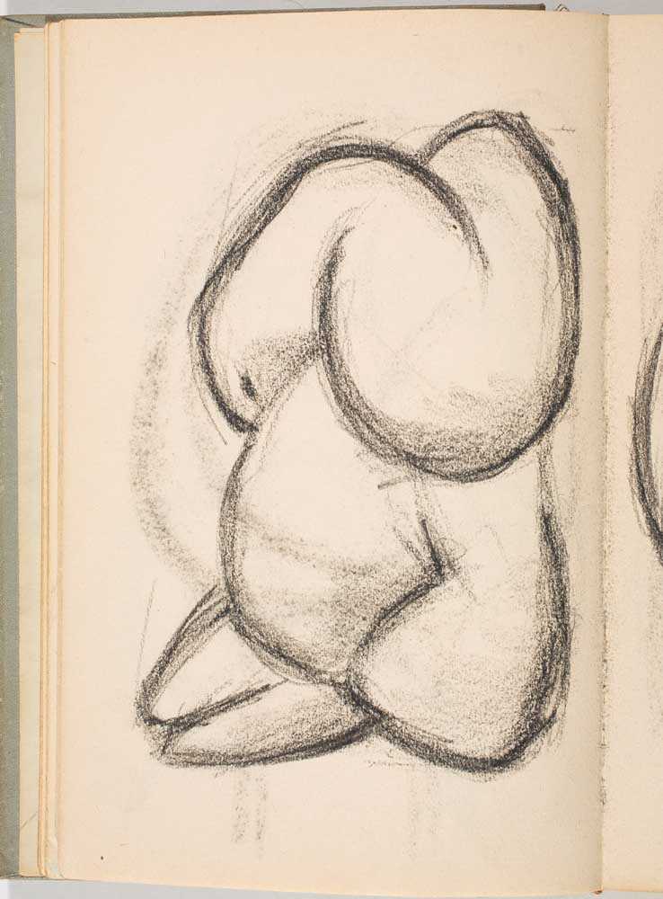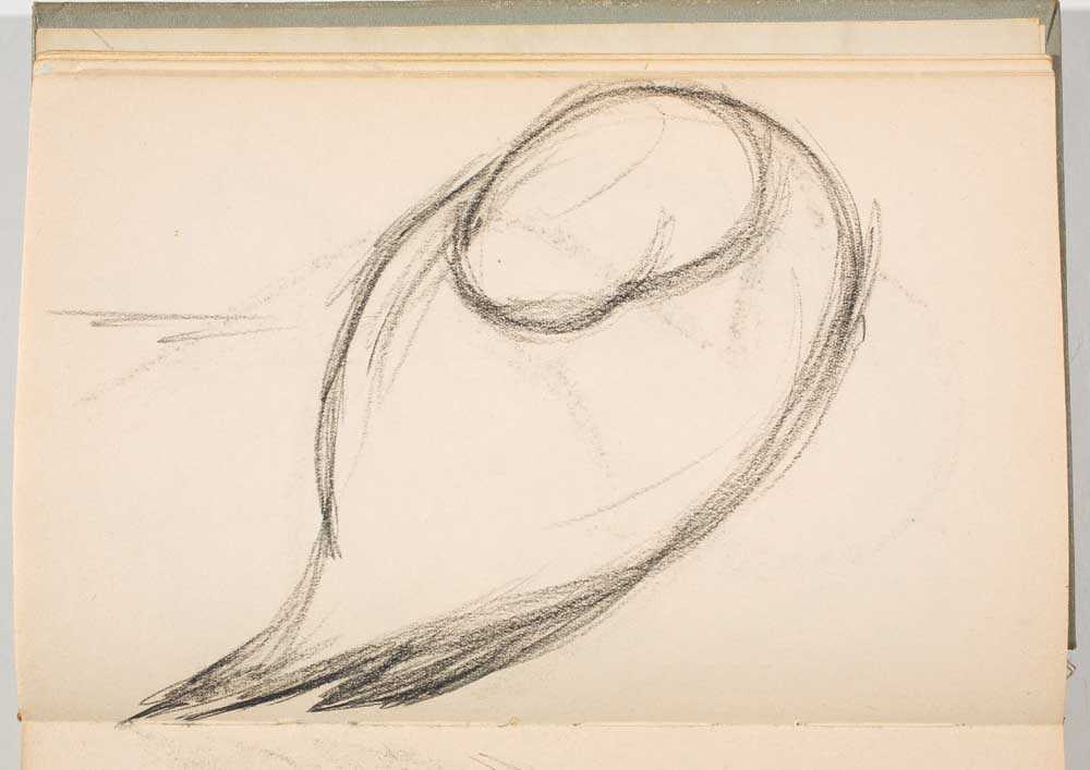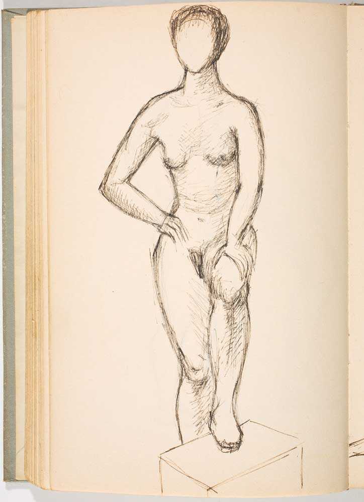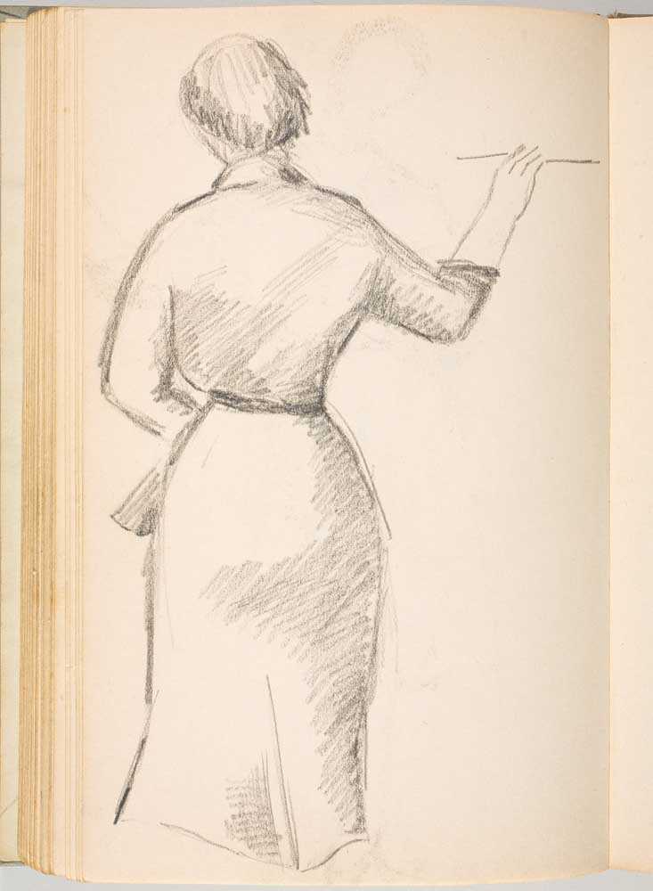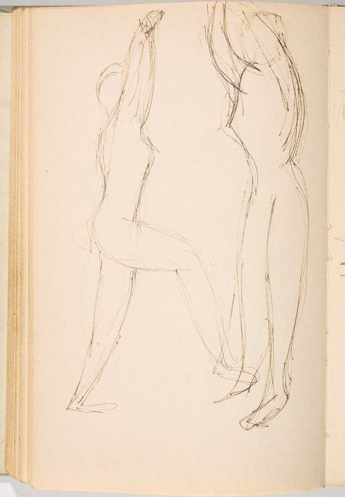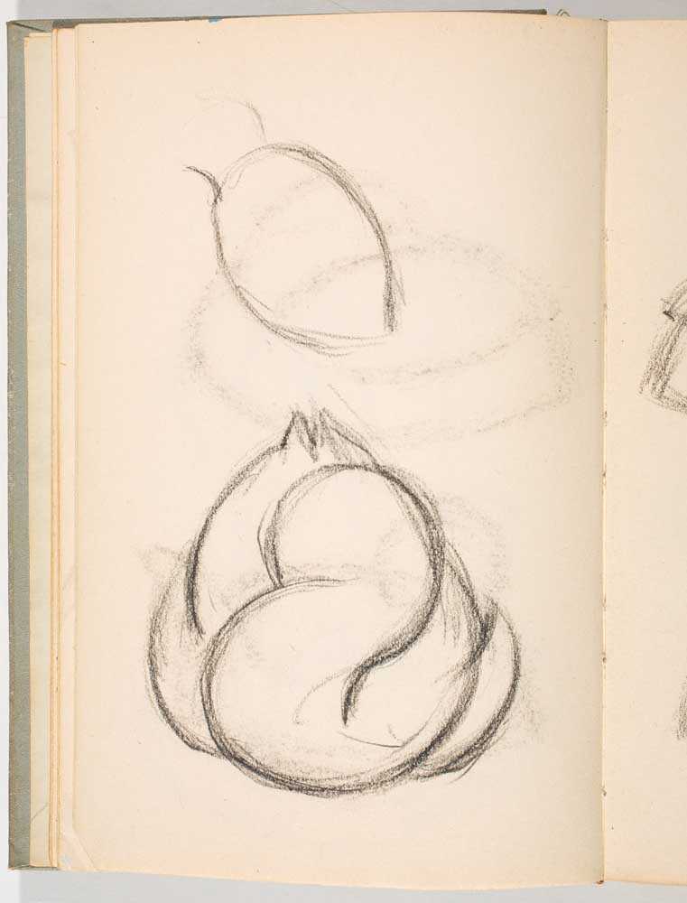 Sketchbook 9 was an improvement for Idonia. Dummies, books executed like a real bound book, but with blank covers and blank pages, appeared for the first time in sale bookstores. The paper quality was less than that of sketchbooks, but certainly good enough for study. The first three quires are missing, probably used loosely by Idonia.