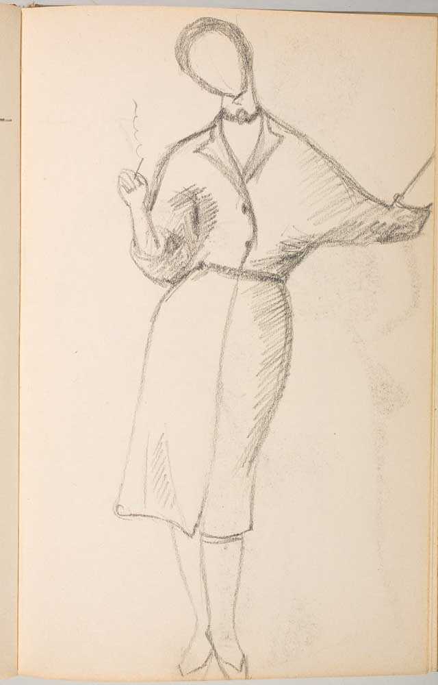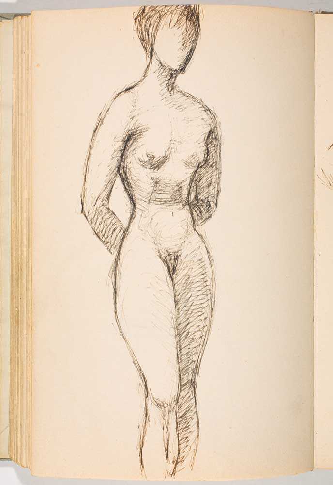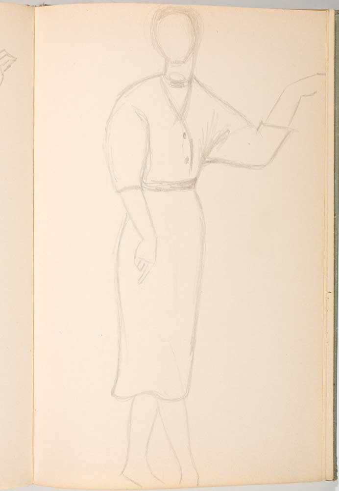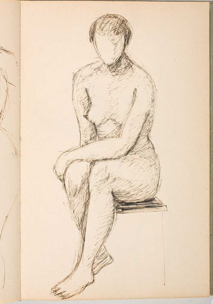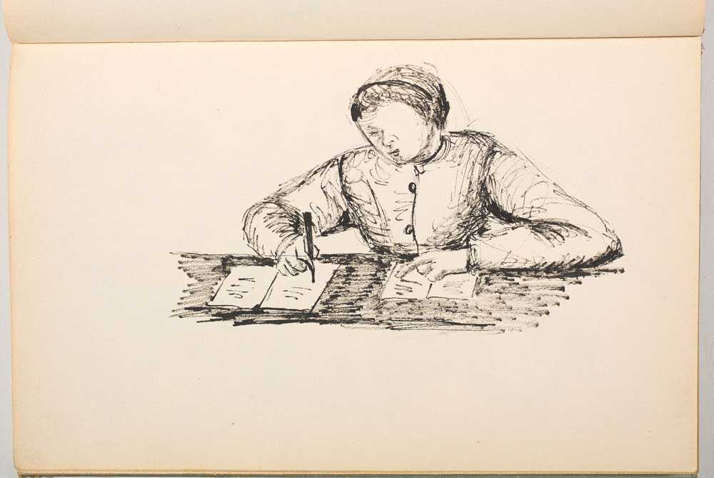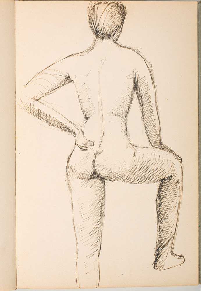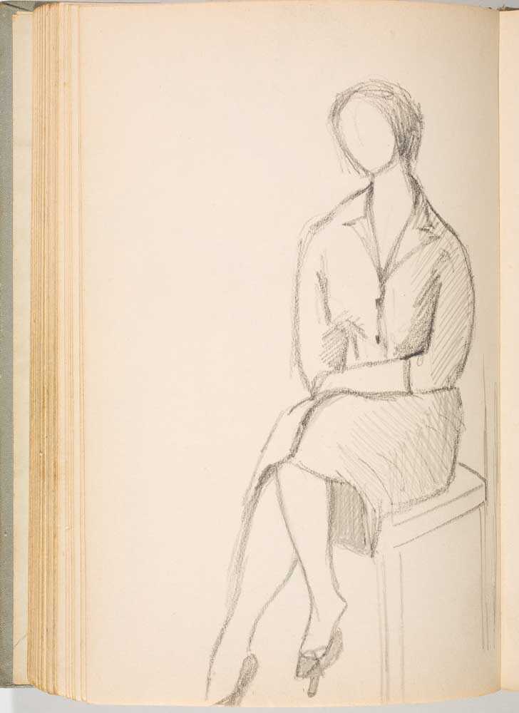 Sketchbook 9 was an improvement for Idonia. Dummies, books executed like a real bound book, but with blank covers and blank pages, appeared for the first time in sale bookstores. The paper quality was less than that of sketchbooks, but certainly good enough for study. The first three quires are missing, probably used loosely by Idonia.