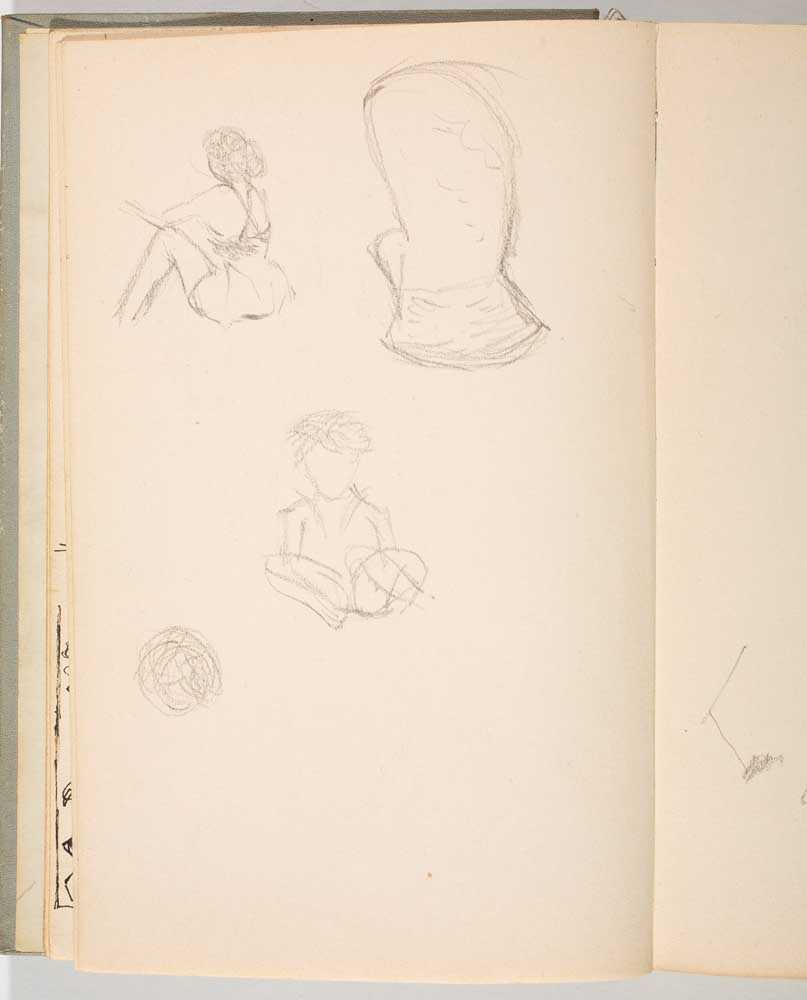 Back endpaper. The text is not in Idonia's handwriting, probably someone jotted this down for Idonia. Two small studies of one part.