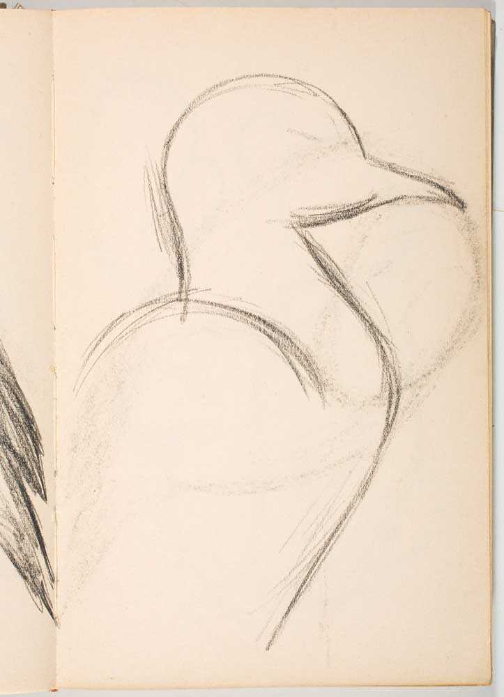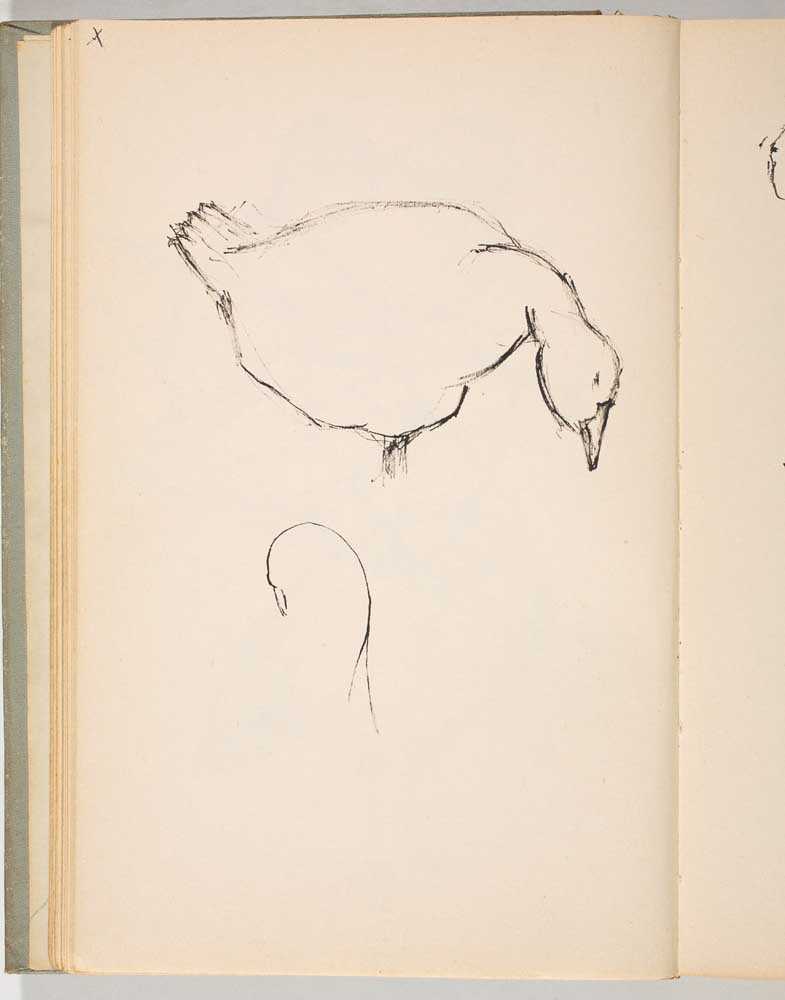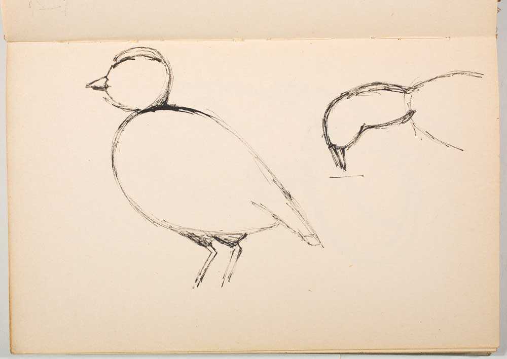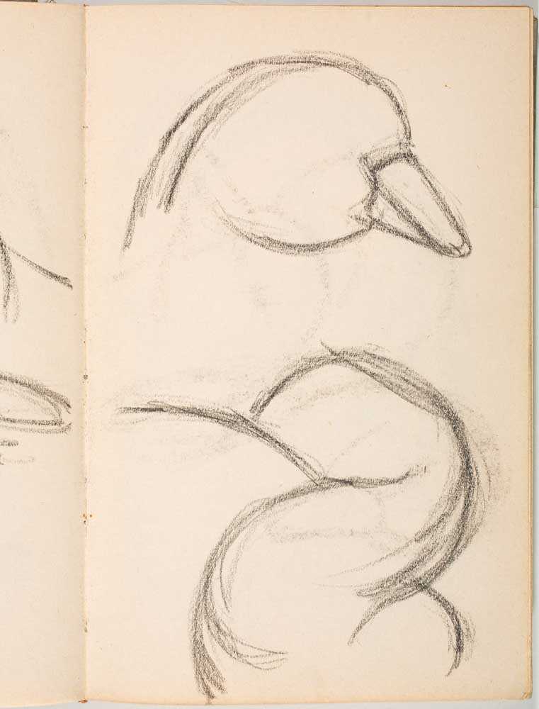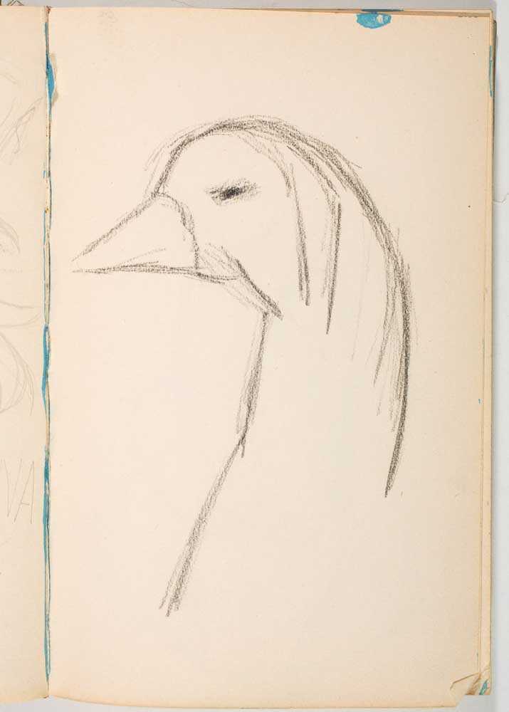 Blad 17 2 schetsjes van kop en hals van een vogel