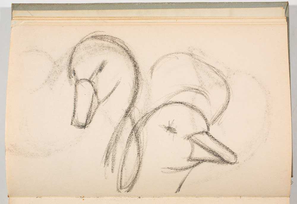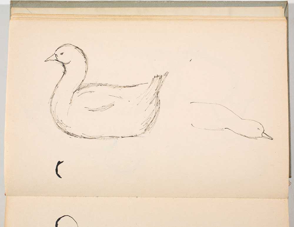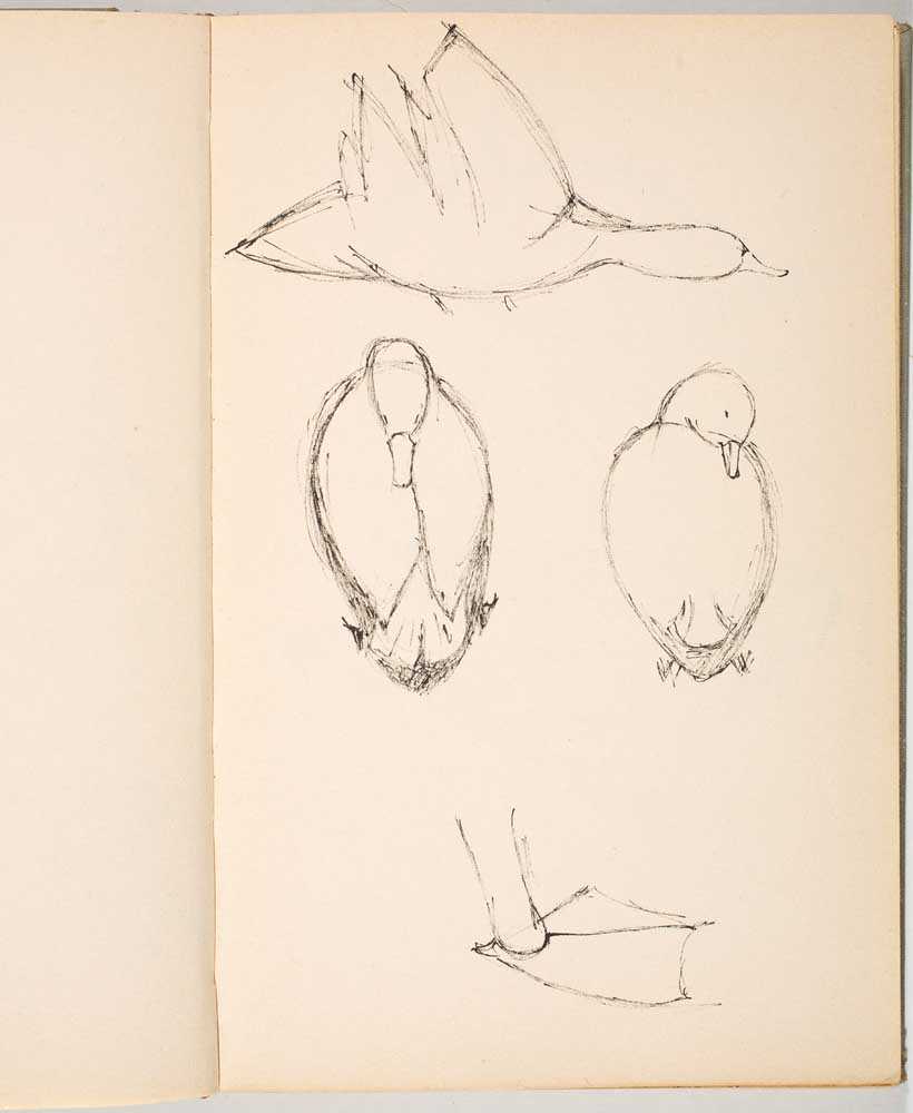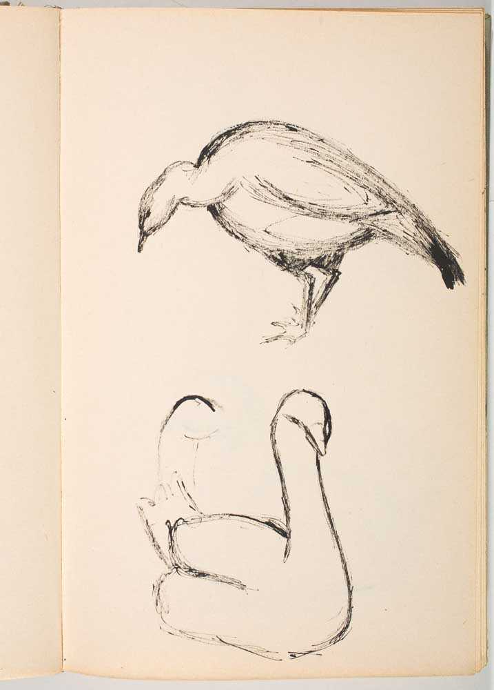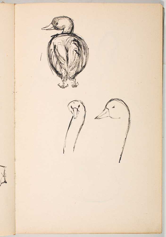 Blad 17 2 schetsjes van kop en hals van een vogel