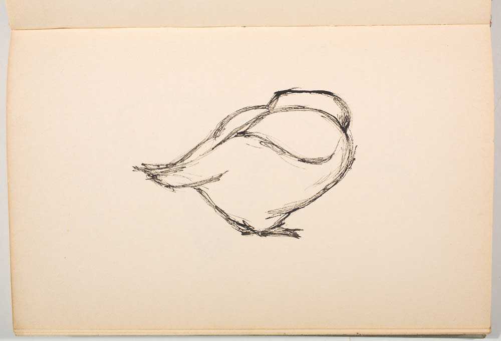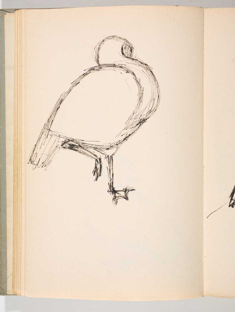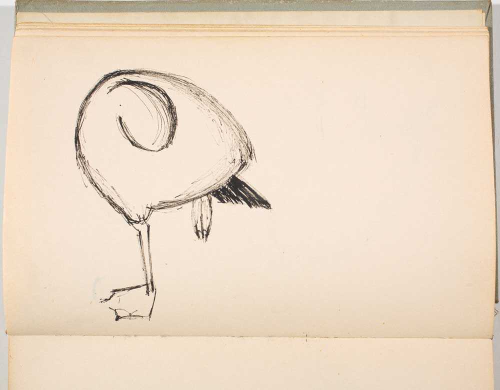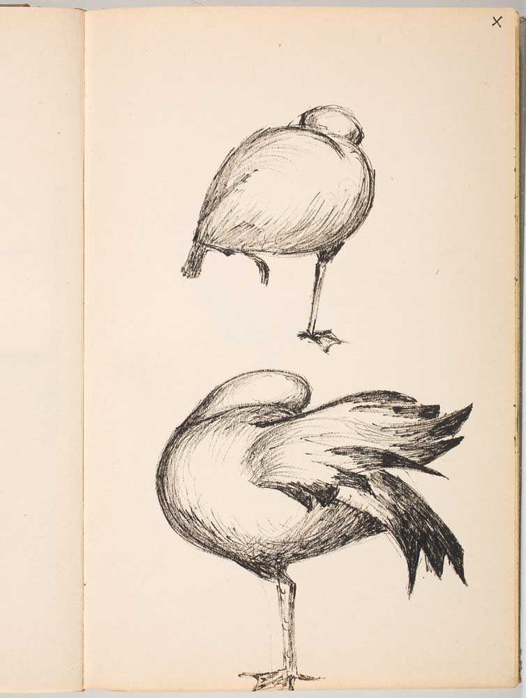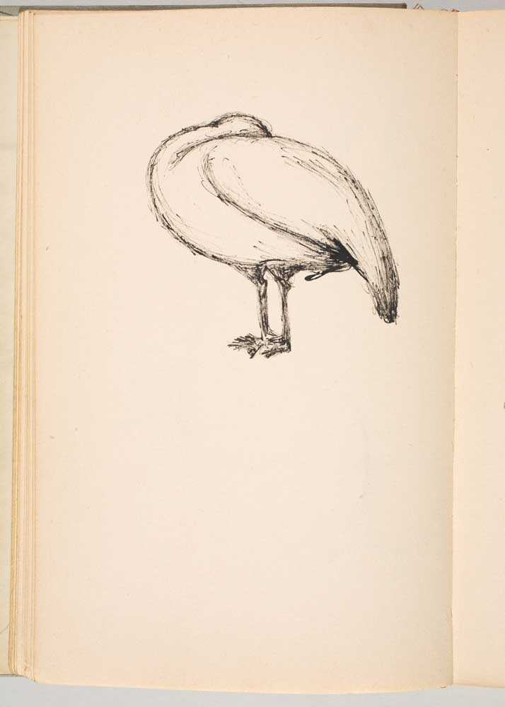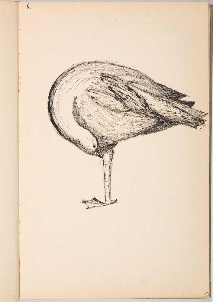 Blad 18 Schets van een vogel die zijn borstveren schoon maakt