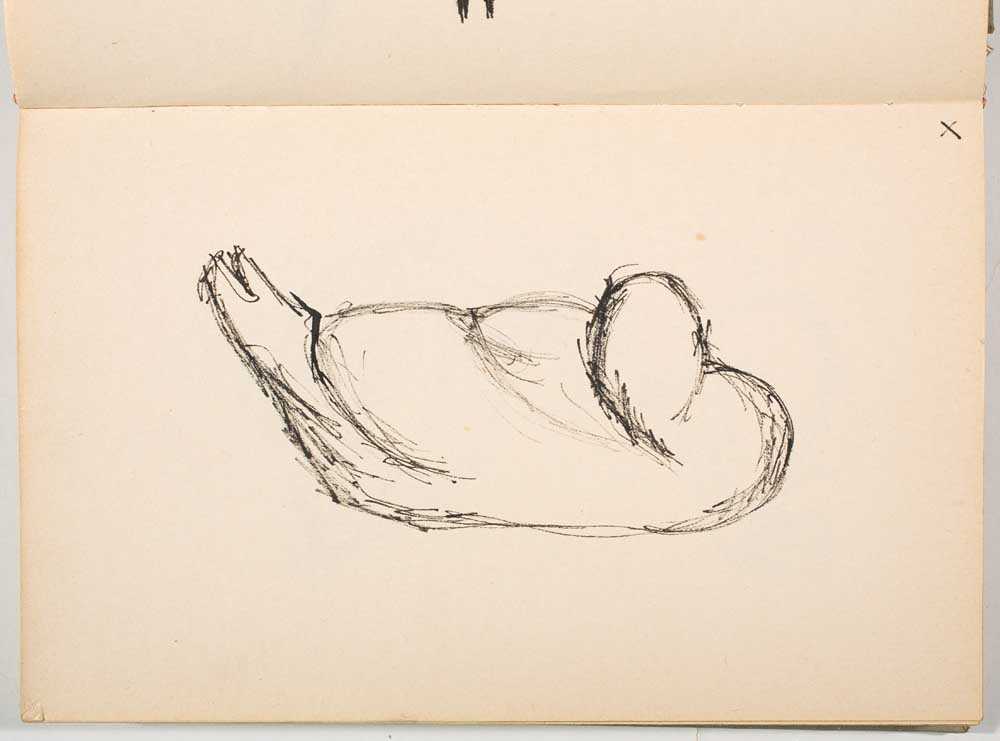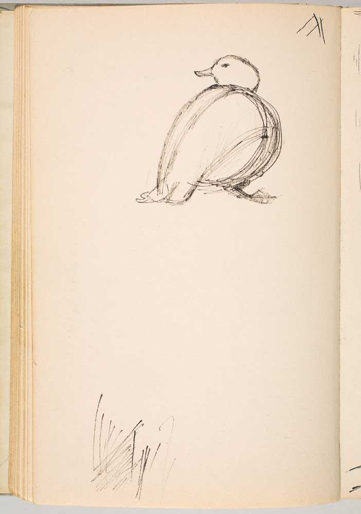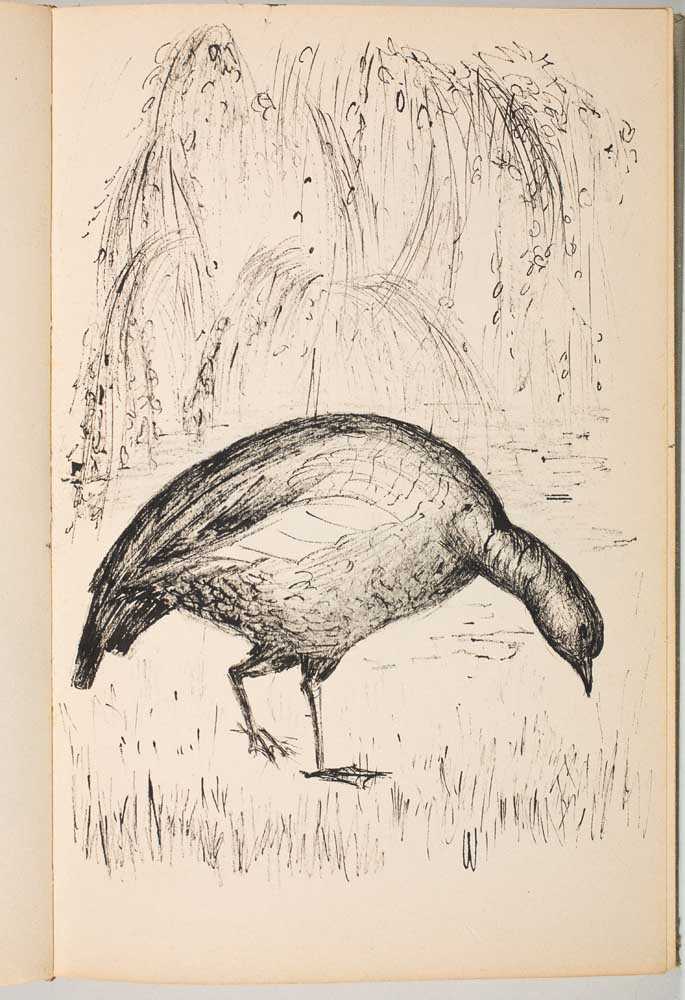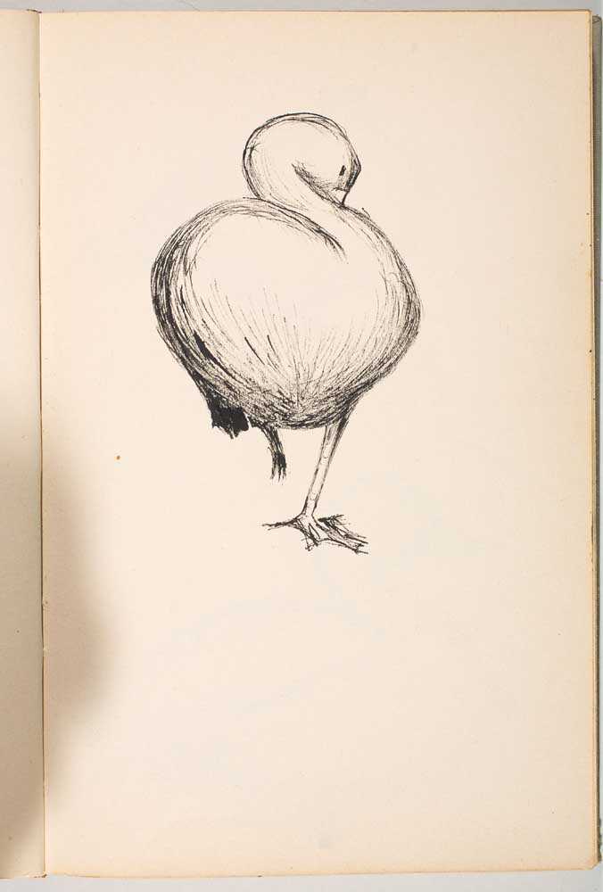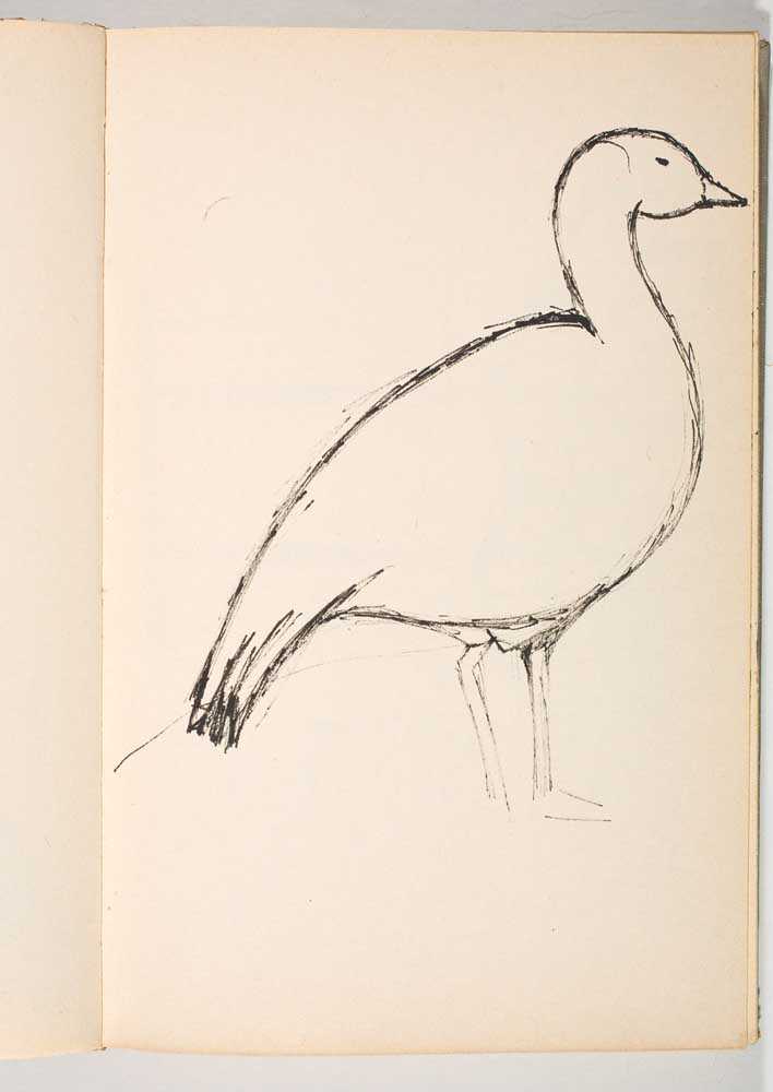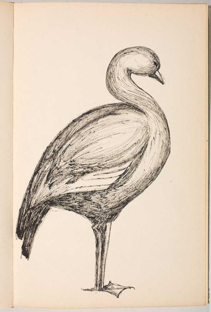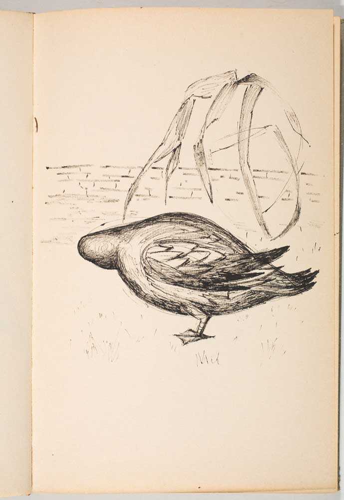 Blad 18 Schets van een vogel die zijn borstveren schoon maakt