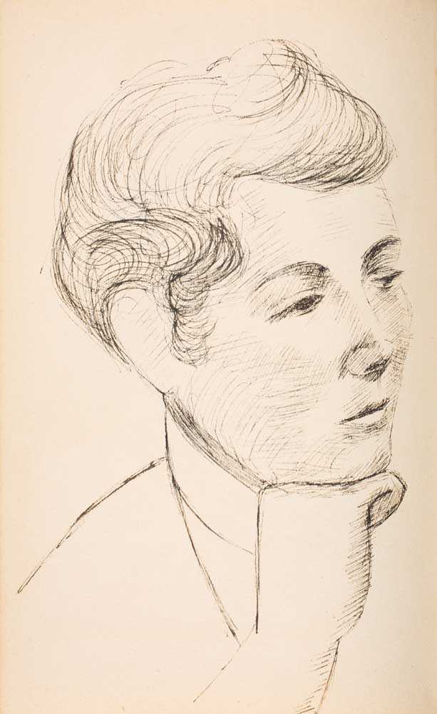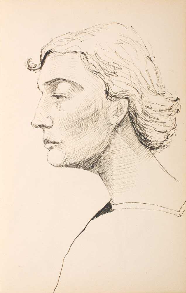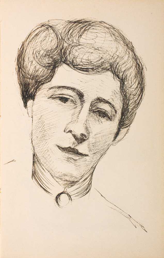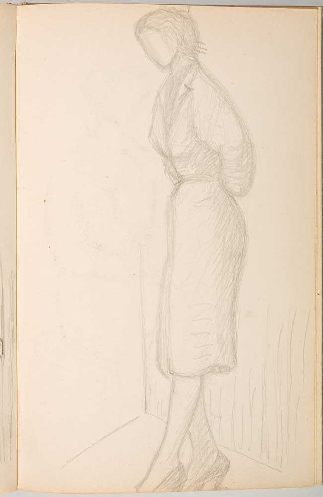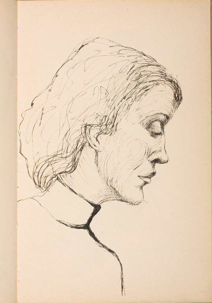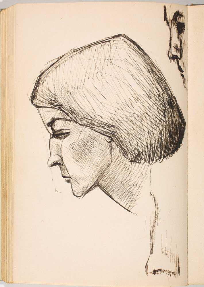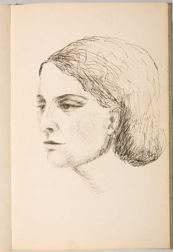 Blad 96. Portret van model met twee hulp tekeningetjes. Achterzijde leeg.
