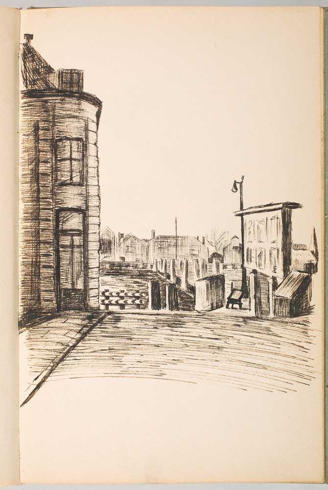 Sheet 84. View through to harbor. I don't know where this drawing was made, I don't remember Scheveningen's inner harbors this way. Back blank.