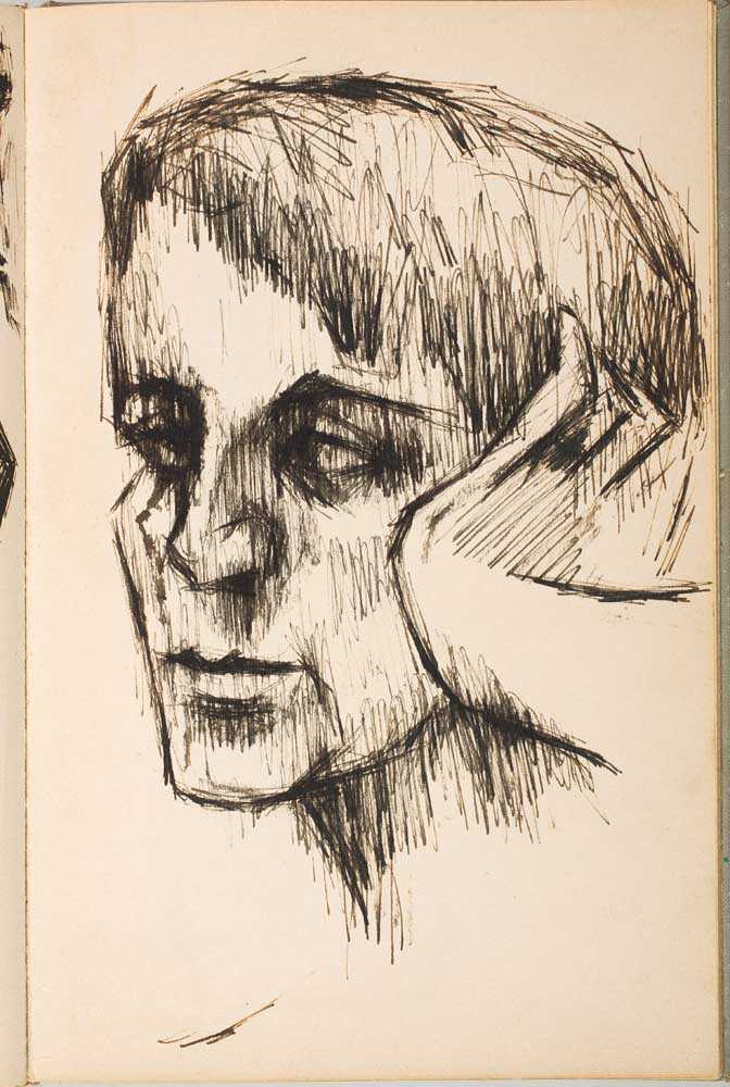 Blad 99. Portret mannelijk model met alpinopet. Achterzijde leeg.