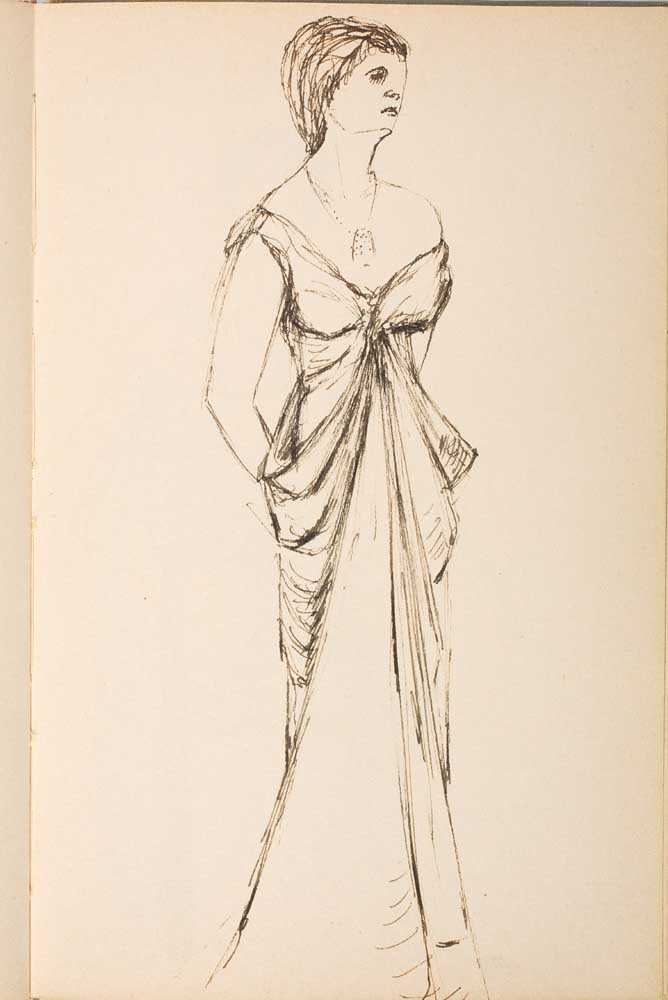 Sheet 91. Female model in evening dress in black and white. Back blank.