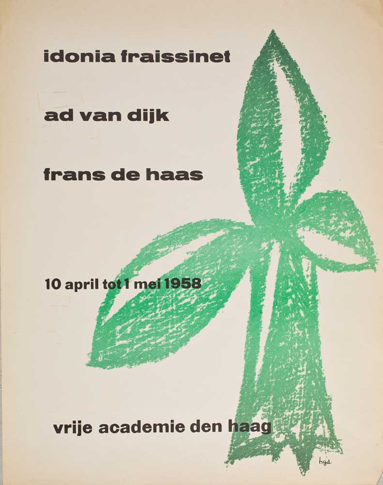 + Catalogue of paintings and prints by Idonia Fraissinet, Ad van Dijk and Frans de Haas at the Free Academy of Art, Hoefkade 101, The Hague. Tel. 111777. -