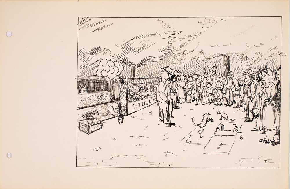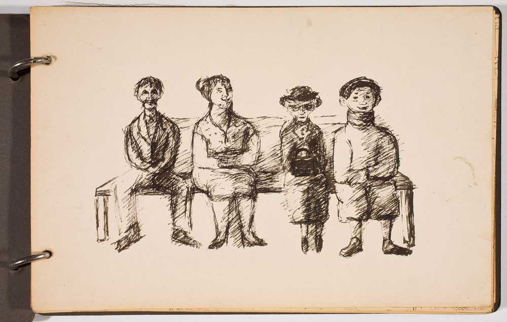 Dit werk is halverwege 2025 aangekocht door P.M. omdat hij het een leuk en mooi schilderij vond. Het stelt voor het strand van Scheveningen langs de boulevard omstreeks 1950-1955. Idonia kwam daar vaak met haar kinderen en maakte dan schetsen van alles was ze interessant vond.
